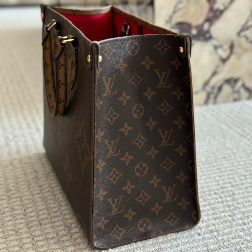 ルイヴィトン トートバッグ ショルダーバッグ オンザゴーMM モノグラム ブラウン レディース LOUIS VUITTON A4対応
