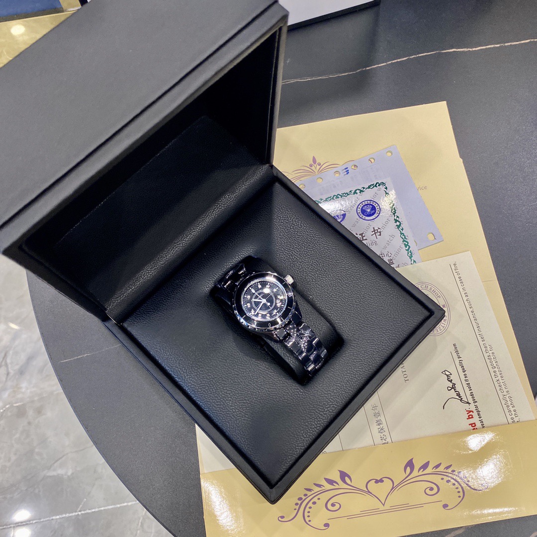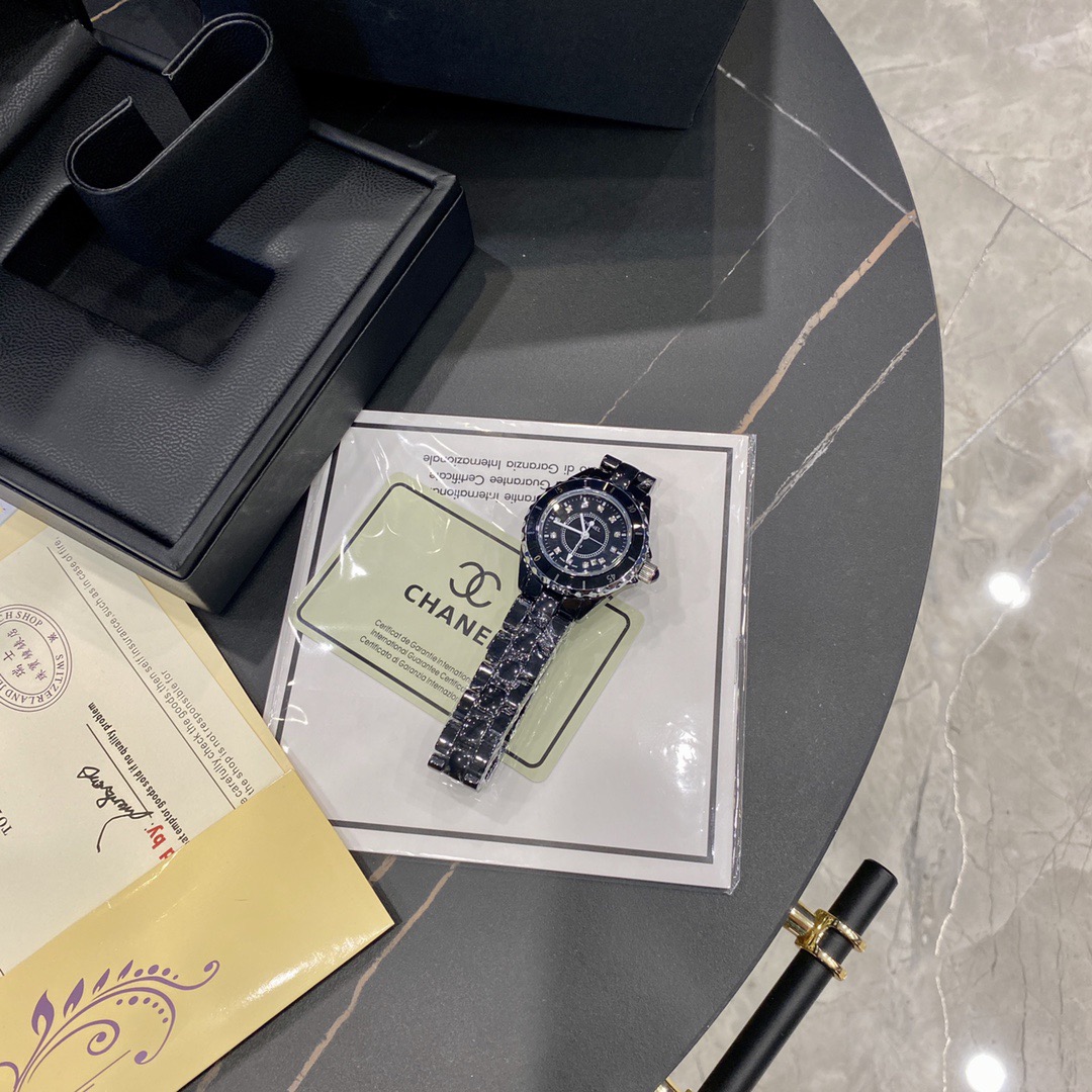 高品質セラミックシャネル J12 クォーツレディース腕時計、セラミック素材、ストーンフェイス、33mm女神必須モデル、ブラックの方がクールです