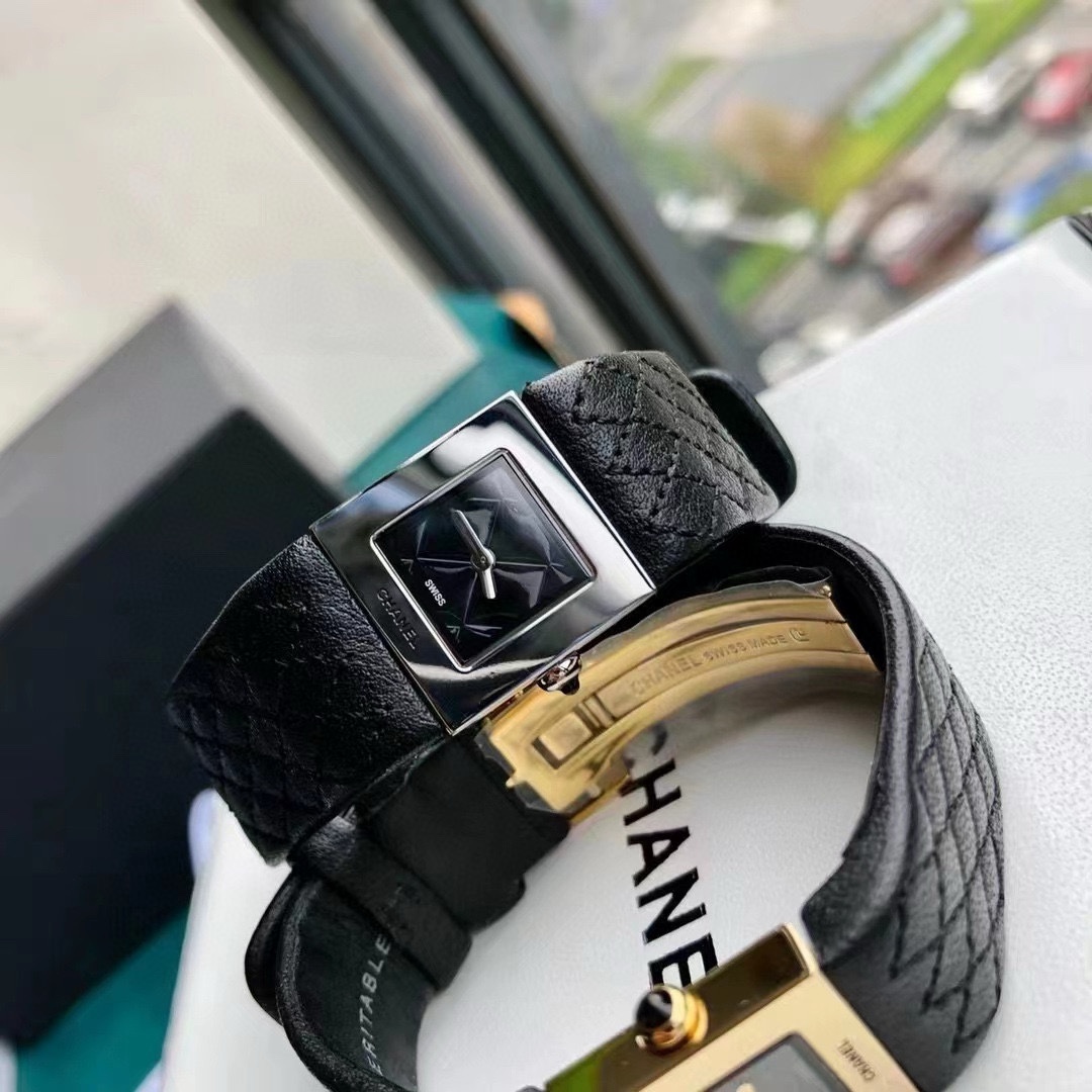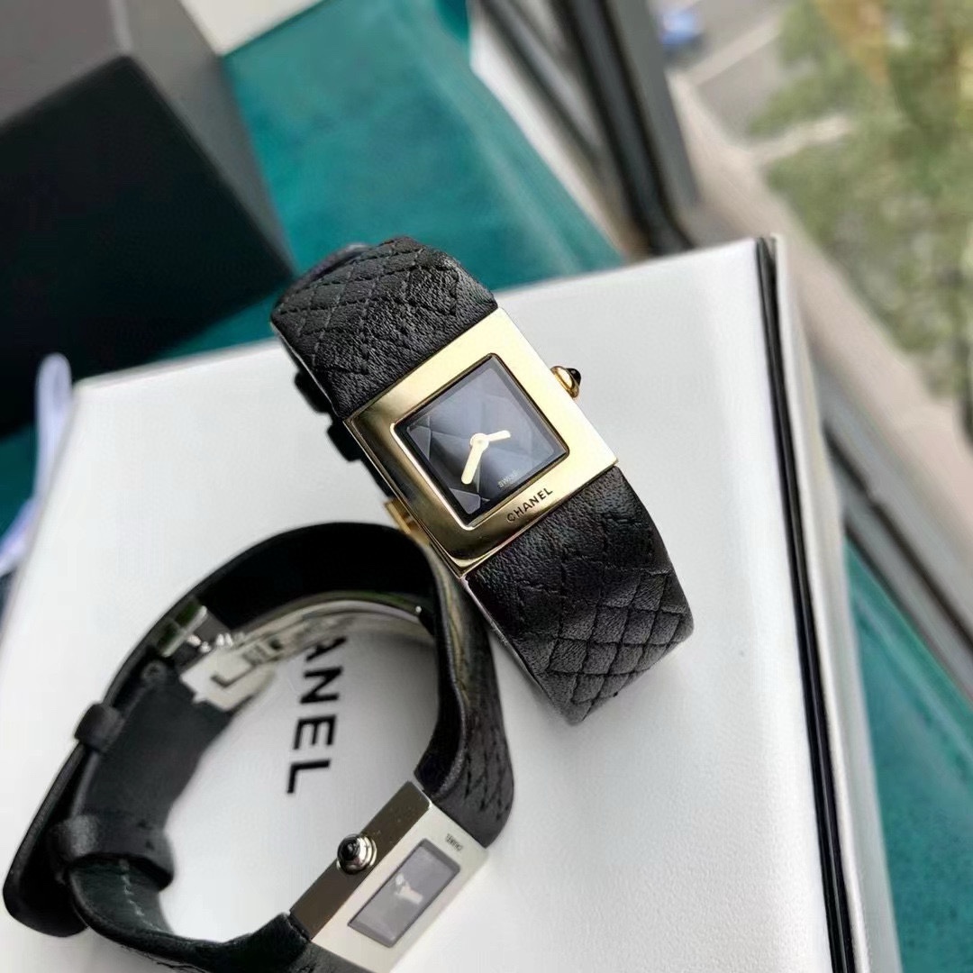Chanel シャネル✨ヴィンテージCHANEL✨菱目打ち小方型腕時計🎁高級レザーストラップが美しい✨上品で使いやすいデイリーレディース時計⌚