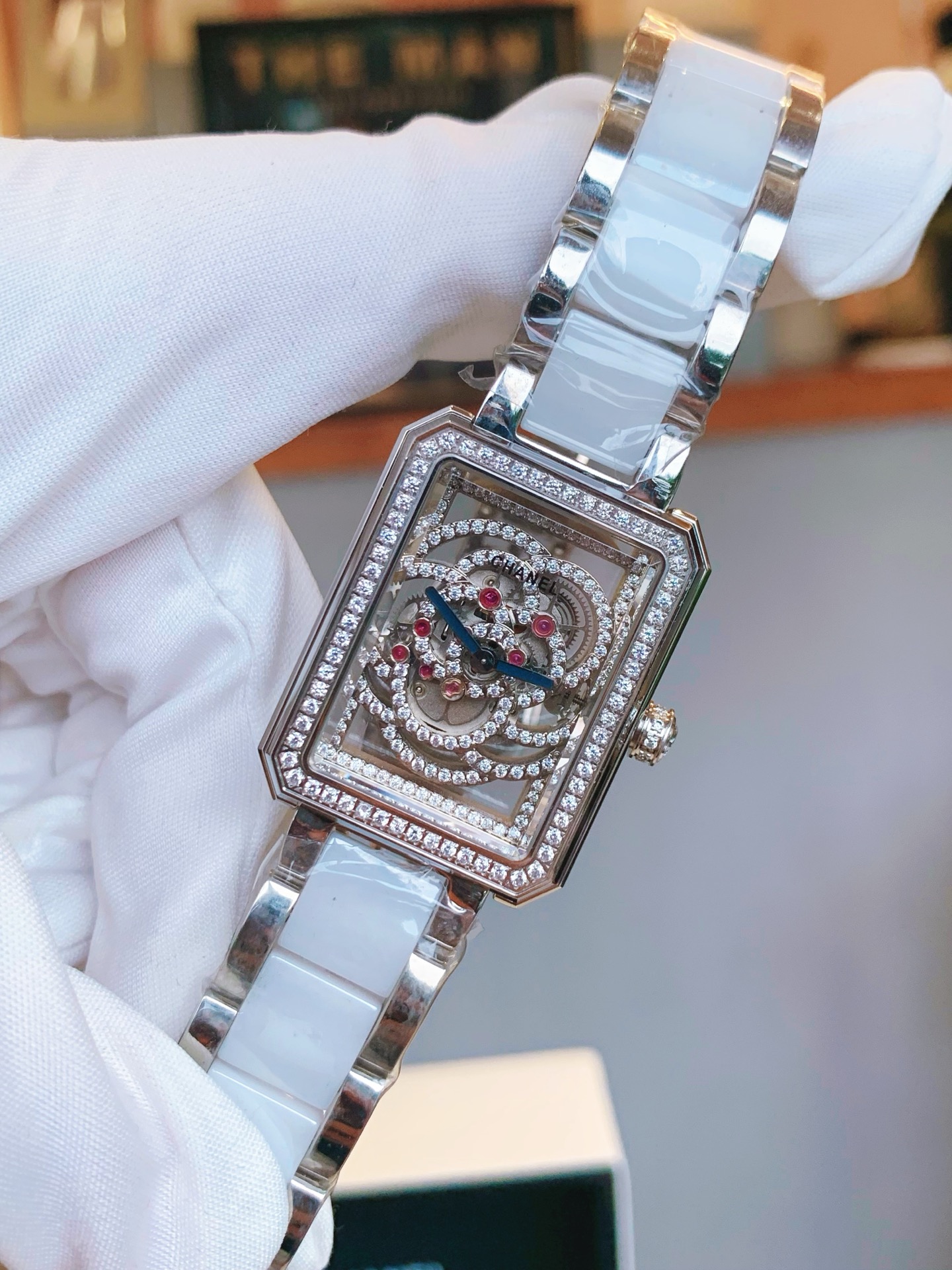 中空で透明なカメリアムーブメントを採用しており、カメリアにはマイクロインレイ技術が採用されています 。カメリアの形をしたマイクロ装飾が施されています 。このシリーズの時計は、明確なエッジとコーナー、シンプルなデザイン、無駄な修正を加えずに雰囲気を損なうことなく、シンプルで力強いラインなど、デザイン要素を十分に取り入れています。