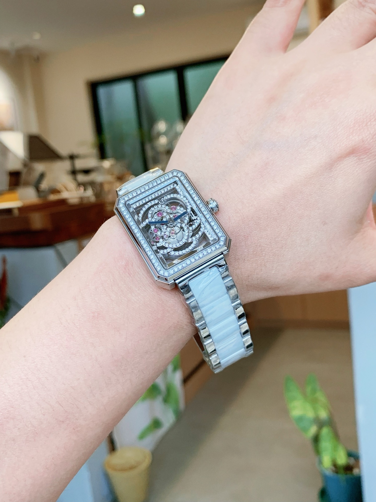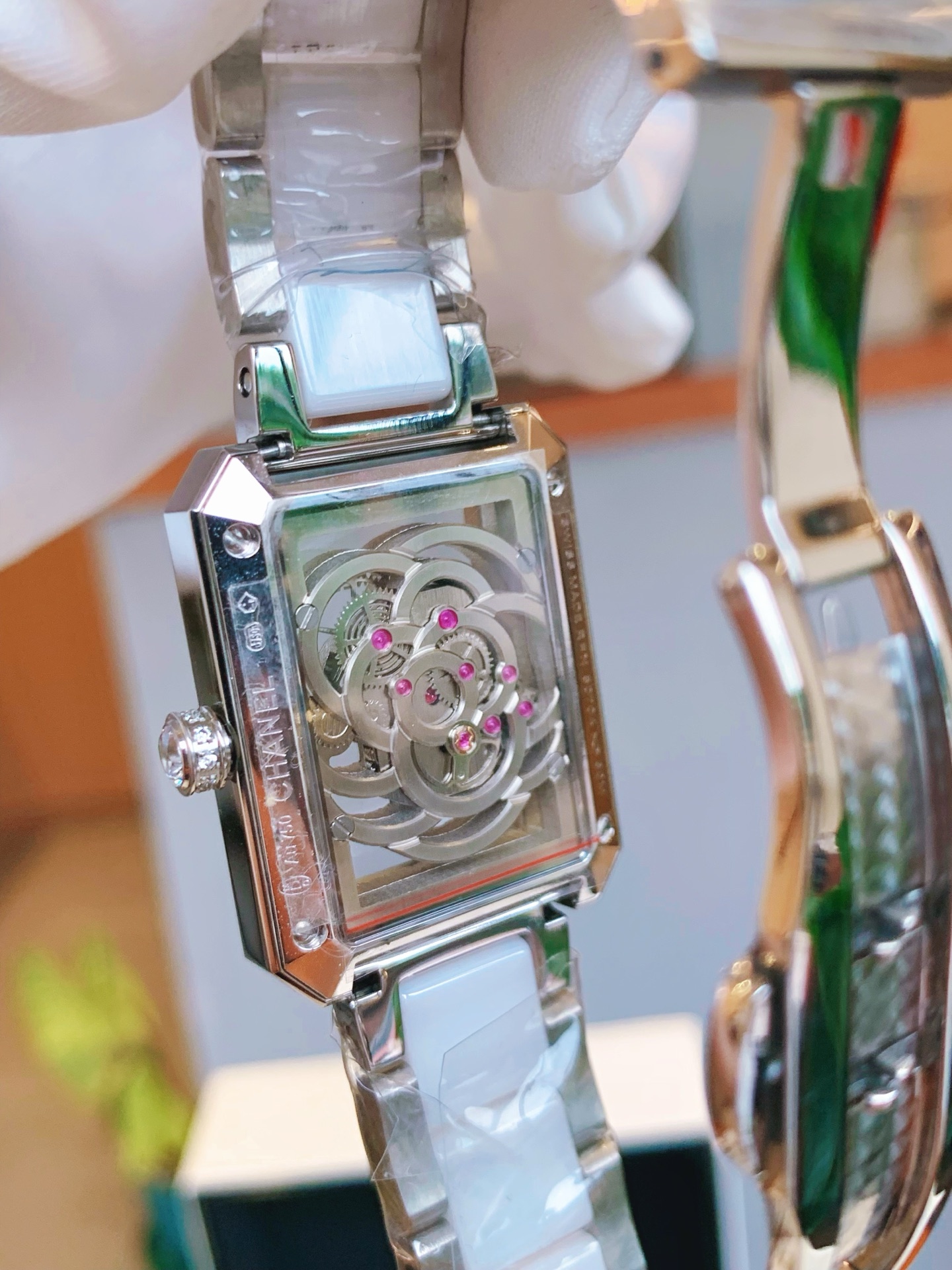 中空で透明なカメリアムーブメントを採用しており、カメリアにはマイクロインレイ技術が採用されています 。カメリアの形をしたマイクロ装飾が施されています 。このシリーズの時計は、明確なエッジとコーナー、シンプルなデザイン、無駄な修正を加えずに雰囲気を損なうことなく、シンプルで力強いラインなど、デザイン要素を十分に取り入れています 。