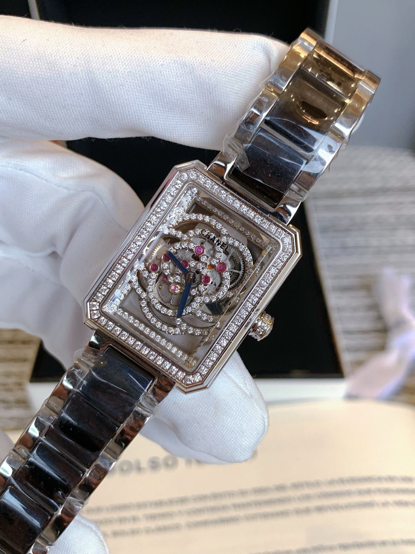 中空で透明なカメリアムーブメントを採用しており、カメリアにはマイクロインレイ技術が採用されています 。カメリアの形をしたマイクロ装飾が施されています 。このシリーズの時計は、明確なエッジとコーナー、シンプルなデザイン、無駄な修正を加えずに雰囲気を損なうことなく、シンプルで力強いラインなど、デザイン要素を十分に取り入れています 。