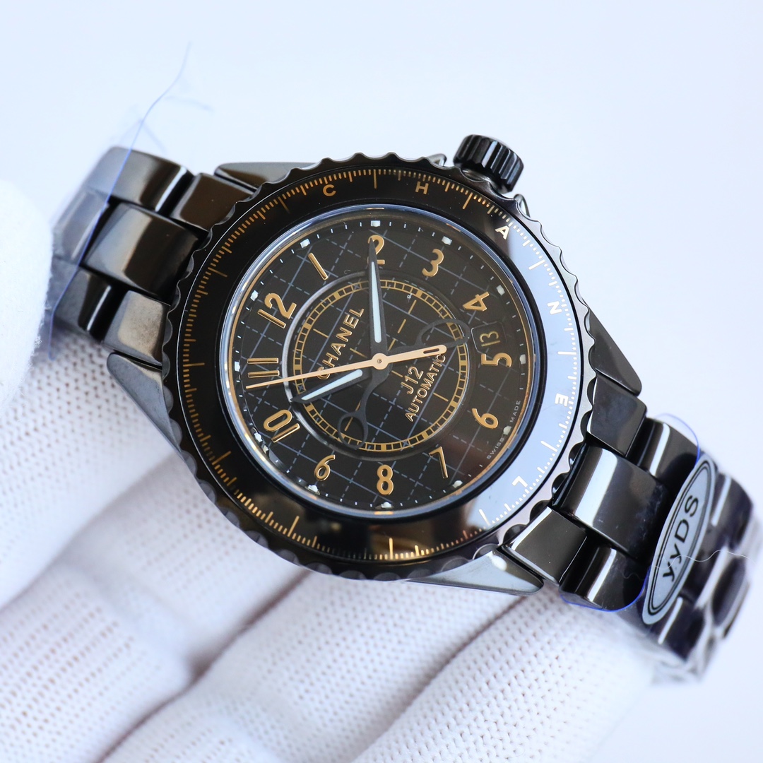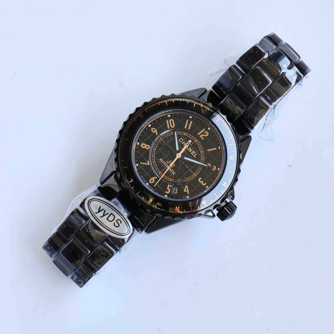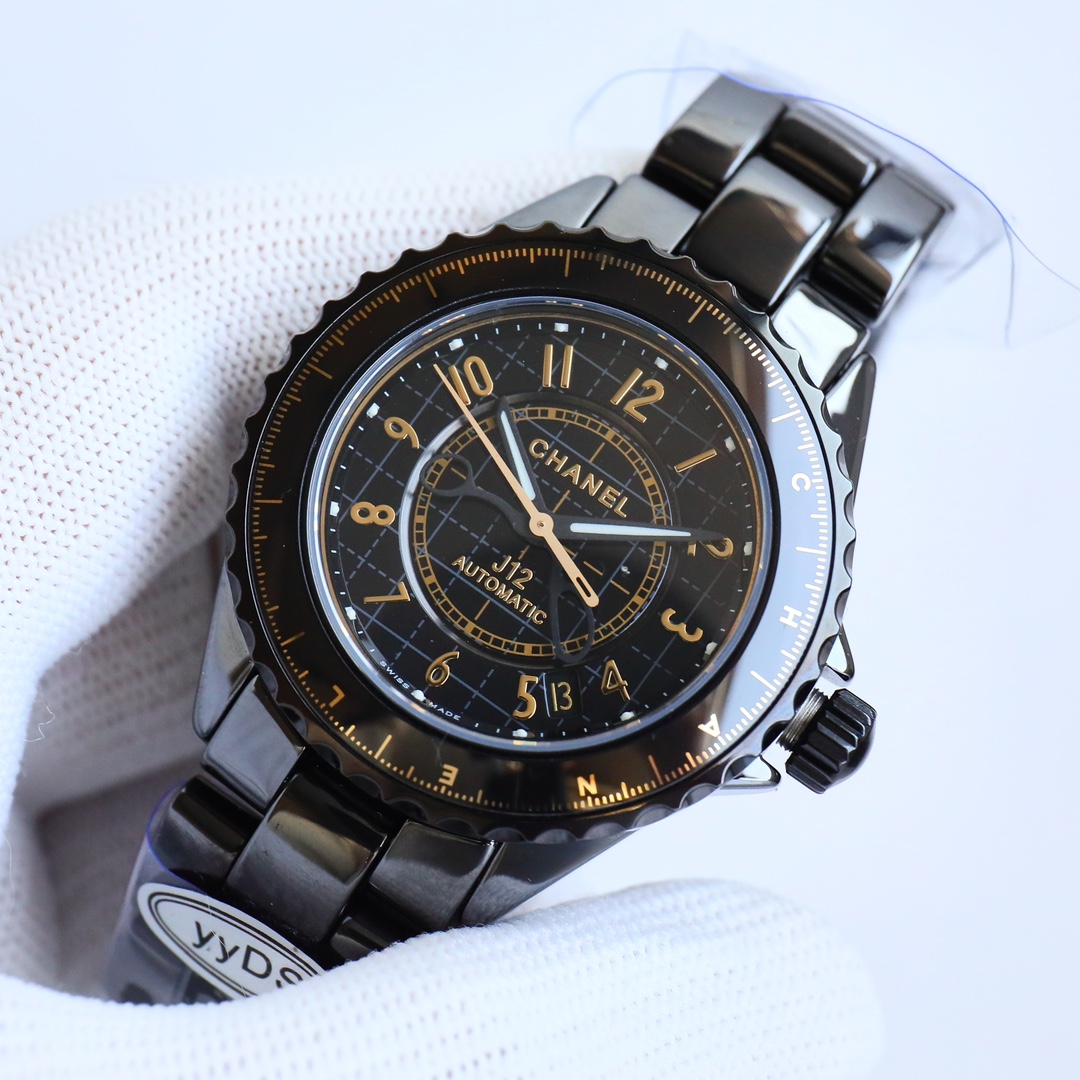 0 yyDS、シャネル J12 刺繍針シリーズ H9762、OT3 を発売 ケース ブラック プレシジョン セラミックとイエロー 18K ゴールド ケース ベゼル サファイア クリスタル 逆回転防止ベゼル ダイヤル ブラック ラッカー ダイヤル、金メッキのアワーマーカーとベベル クラウン カボション ホワイト プレシジョン セラミック ねじ込み式イエロー 18K リューズ ストラップ ブラック プレシジョン セラミック ストラップ バックル トリプルフォールディング ステンレススチールバックル ムーブメント 再彫刻されたシャネル キャリバー 12 .1 自動巻き機械式ムーブメント 新しい COUTURE OCLOCK 限定シリーズ ウォッチ。