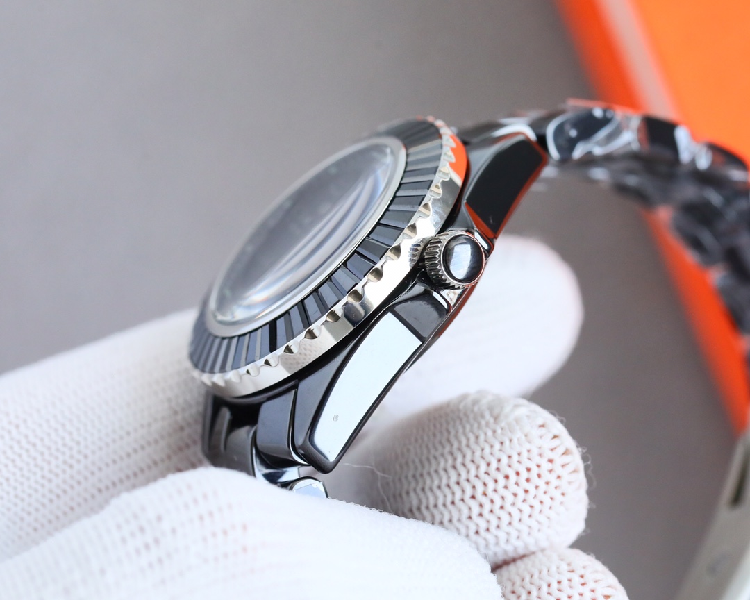 女神の福利、独創的な作品、毎年恒例の傑作 ! 「最新バージョンの詳細」 1ケースサイズはオリジナルバージョンと同じ、33mmの時計を採用 ! 2高密度強化セラミック素材で作られており、軽量、耐摩耗性、非アレルギー性、色あせしません。
