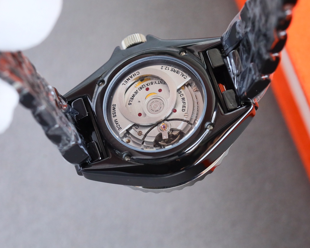 底部のシースルーガラスを通して、シャネル独自の自動巻き機械式ムーブメント CALIBER 12.2 が一目で確認でき、その価値がさらにわかります。