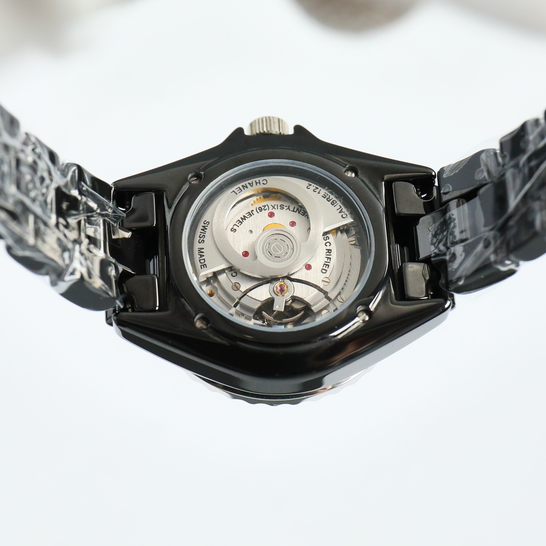底部のシースルーガラスを通して、シャネル独自の自動巻き機械式ムーブメント CALIBER 12.2 が一目で確認でき、その価値がさらにわかります 。 S1 絶品おすすめレディース機械式時計