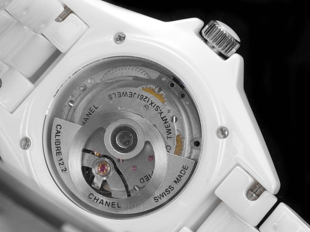 底部のシースルーガラスを通して、シャネル独自の自動巻き機械式ムーブメント CALIBER 12.2 が一目で確認でき、その価値がさらにわかります。