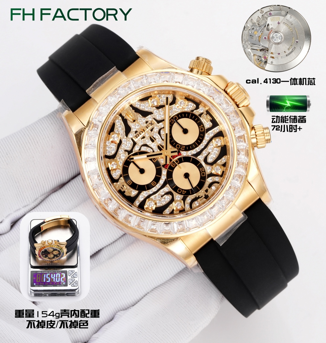 V2 4131 4130 マシン ゴールド ホワイト 0 V1 。 4130 2700 7750 機械 145 グラム 2400 フルダイヤモンドフェイス 100 FH 工場ロレックス ROLEX デイトナシリーズLX1 デイトナのコストパフォーマンスに優れた重みバージョン ケース内の重りにより皮の剥がれを防ぎ、色褪せしません 。