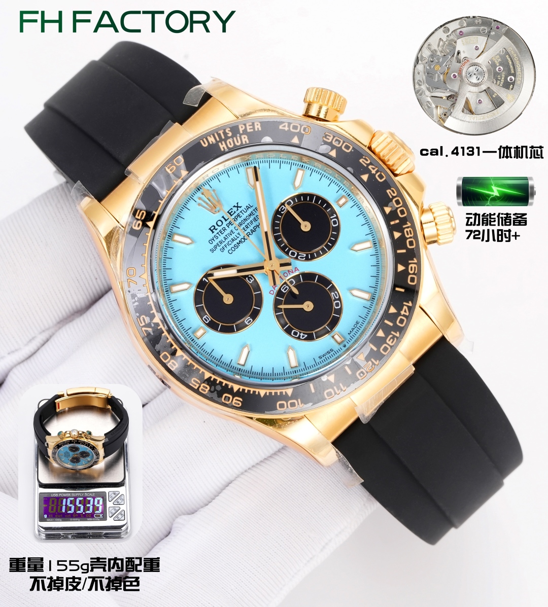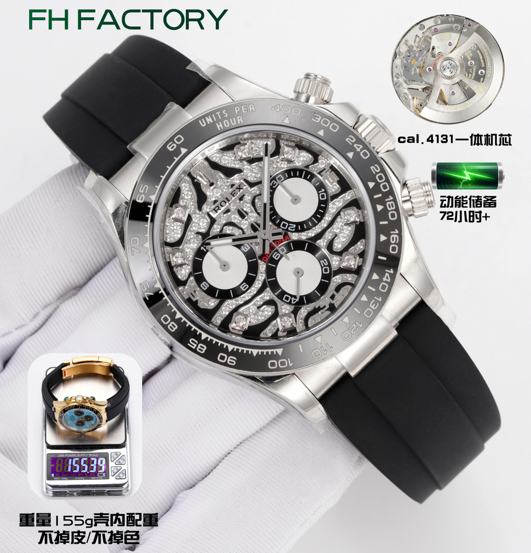 V2 4131 4130 マシン ゴールド ホワイト 0 V1。 4130 2600 FH工場ロレックス ROLEX デイトナシリーズLX1デイトナのコストパフォーマンスの高い重みバージョン ケース内の重みは剥がれたり色褪せたりせず、時計全体は155g、ゴールドフィルドです! 上海 4130 および 4131 の動き選択してください。 厚さはわずか12.2MMで、底部カバーの厚いバージョンではありません。ベゼル、文字盤、針、ケースカバー、テープ、バックルはすべて一流の代替アクセサリーです 。ディテールも充実していて、色もマッチしています !