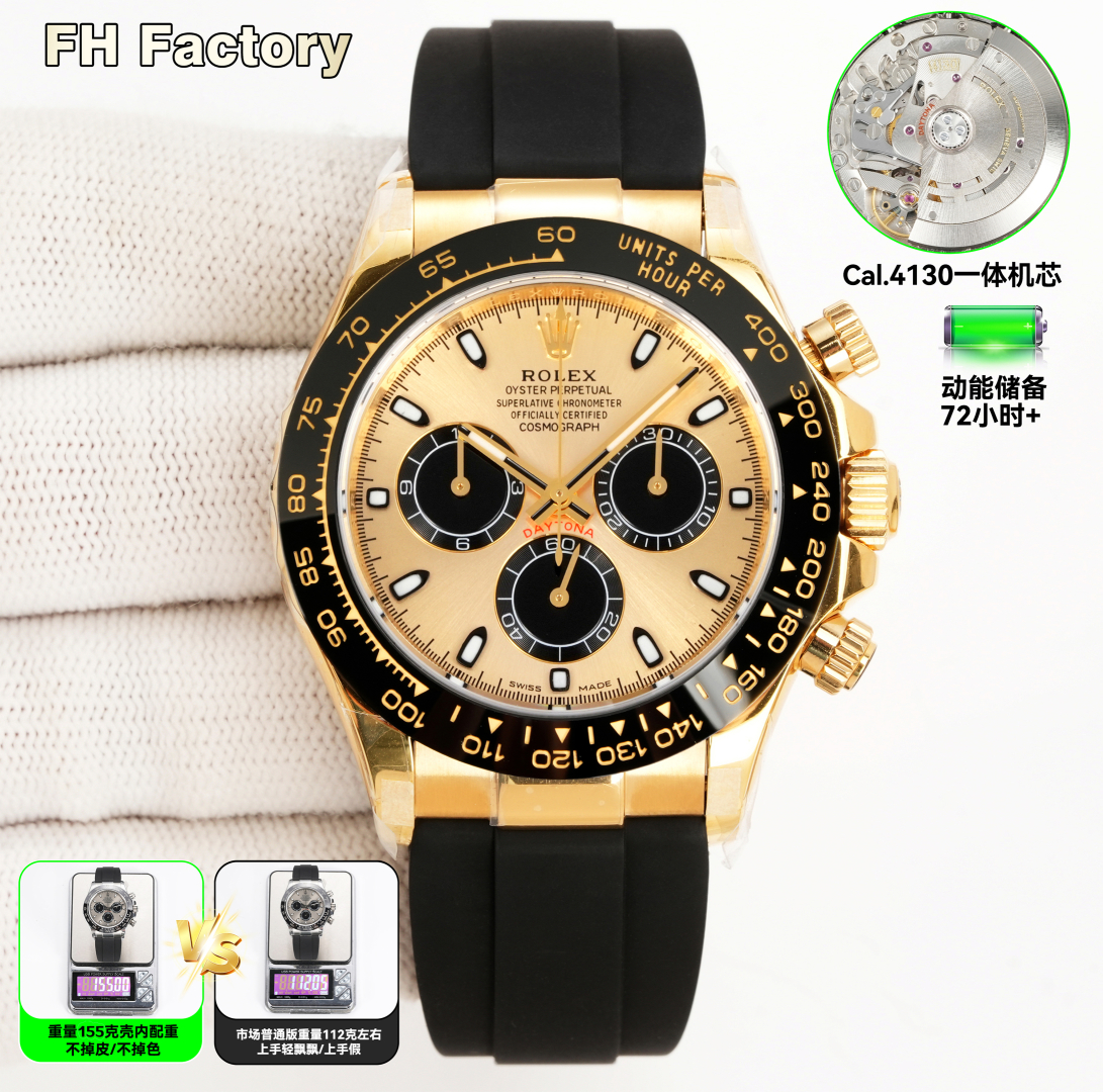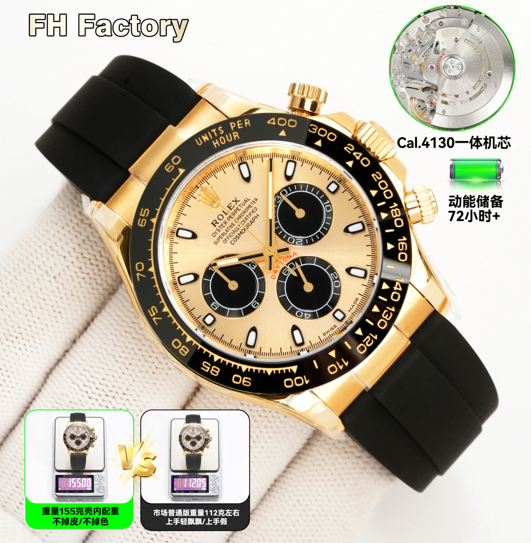 V2 4131 4130 機械、ゴールドとホワイト、ダイヤモンド 0 個、3600 FH 工場、ロレックス デイトナ シリーズLX1 デイトナのコスト効率の高い加重バージョン ケース内のウェイトは剥がれたり色褪せたりせず、時計全体は 155 グラム、 ゴールドフィルドです 上海 4130 および 4131 の動き 選択してください 厚さはわずか12.2MMで、底部カバーの厚いバージョンではありません 。ベゼル、文字盤、針、ケースカバー、テープ、バックルはすべて一流の代替アクセサリーです。ディテールも充実していて、色もマッチしています !