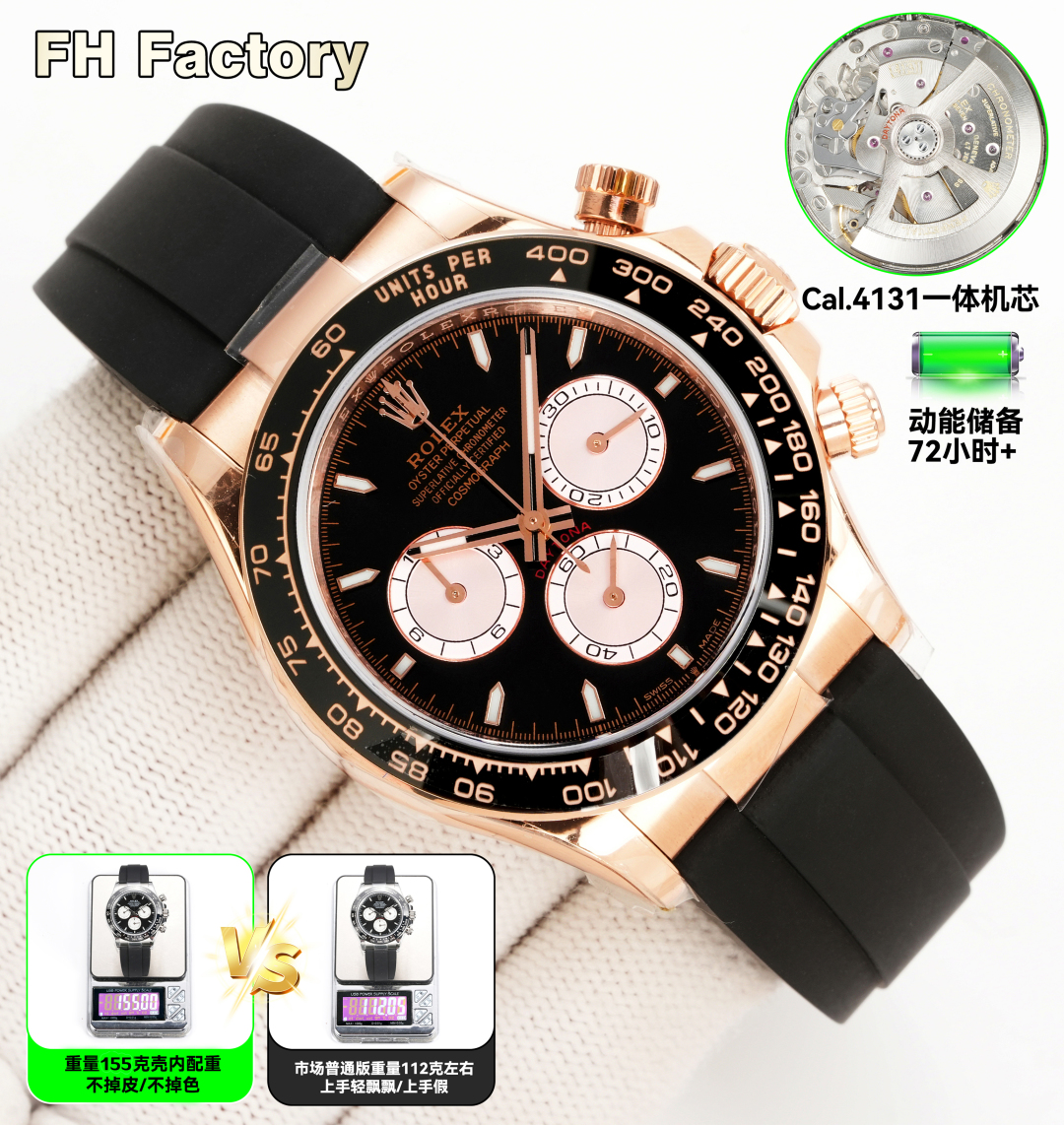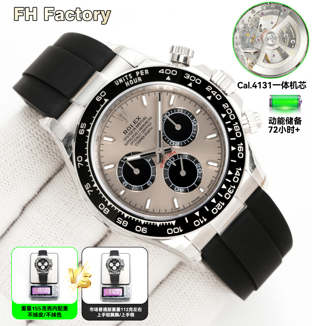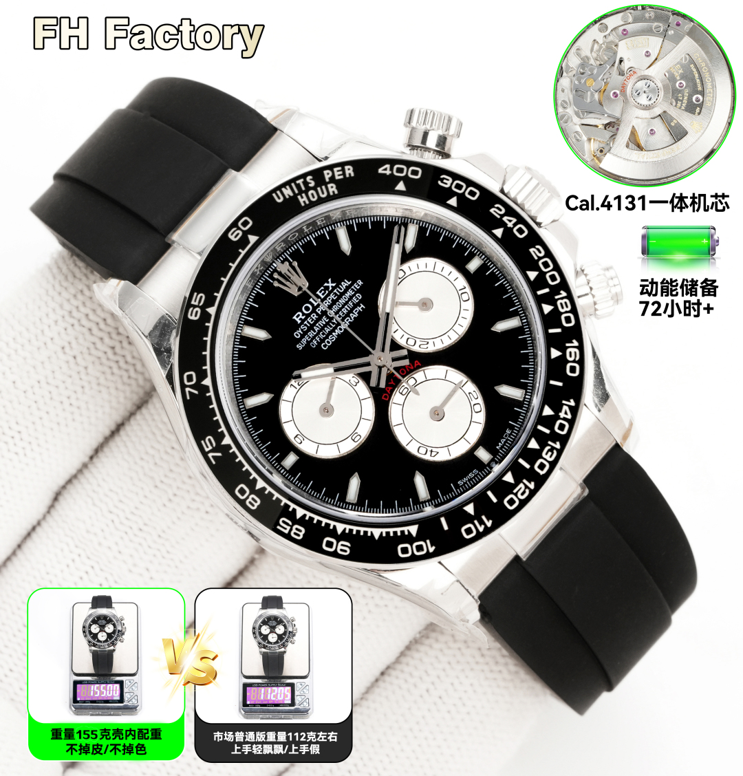 4131 4130 機械、ゴールドとホワイト、0 ダイヤモンド、3600 FH 工場ロレックス デイトナ シリーズLX1 デイトナのコスト効率の高い加重バージョン ケース内のウェイトは剥がれたり色褪せたりせず、時計全体は 155 グラム、 ゴールドフィルドです 上海 4130 および 4131 の動き選択してください 。 厚さはわずか12 .2MMで、底部カバーの厚いバージョンではありません。ベゼル、文字盤、針、ケースカバー、テープ、バックルはすべて一流の代替アクセサリーです 。ディテールも充実していて、色もマッチしています!