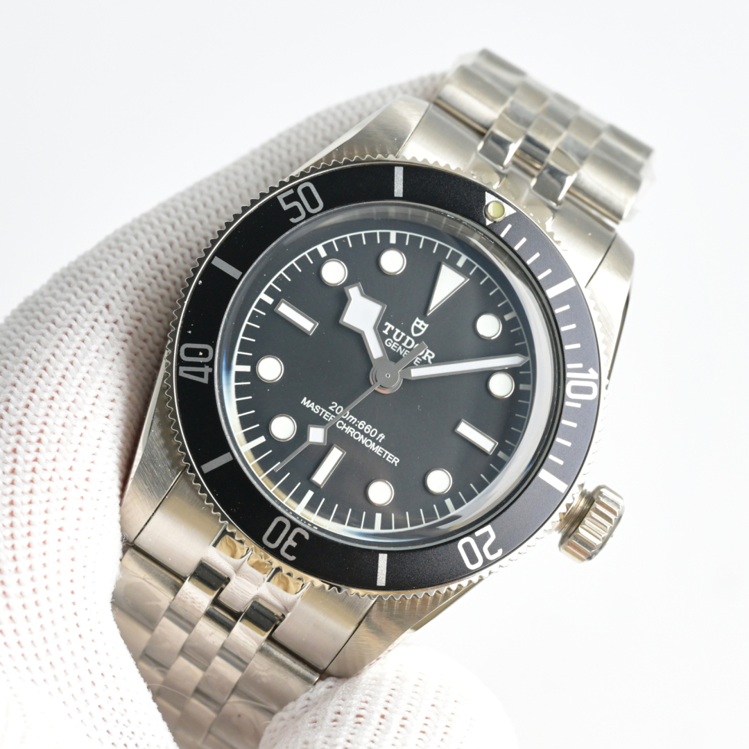 時計のケースはステンレススチール製で、細かく研磨され、つや消し加工が施されており、独特の質感と光沢を与えています。ロレックス サブマリーナーと同様、ケースのサイズは 41 mm で、これも「オリジナル」ブラックベイの直径に準拠しています 。