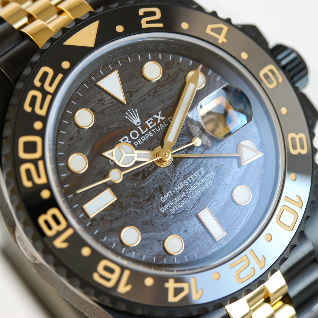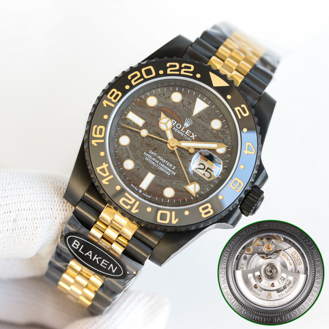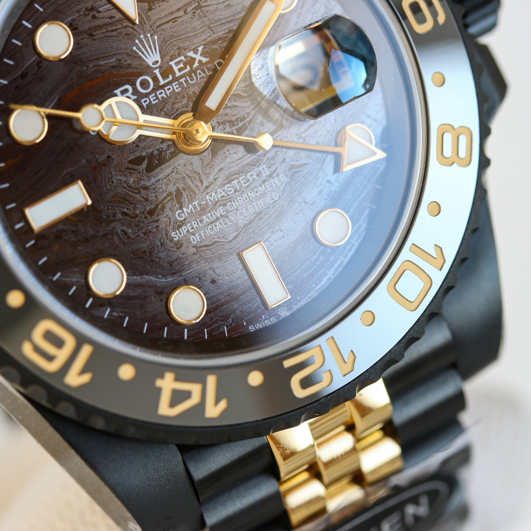 質感は流れる金属のタイガーストライプのようで、それぞれの作品はユニークな自然の芸術です。アップで見てください、質感はストレートで、着用すると手首のフォーカルポイントになること間違いなしです ロレックス GMT マスター II ダブル回転リング 独立して調整可能な第 4 針、デュアルタイムゾーンの自由な切り替え、国境を越えた旅行やタイムゾーンパーティーのエクスタシー シースルーバックのデザインからは、ロレックス キャリバー 3285 のムーブメントが直接露出します。フラッグシップムーブメントの精密な動作を一望できます。メカニカルファンは直に惚れる! BLAKEN 修正の祝福、黒と金のコントラストカラー パーソナライズされたゴールドと黒の修正、手首に「ニッチな高級感」を溶接します。