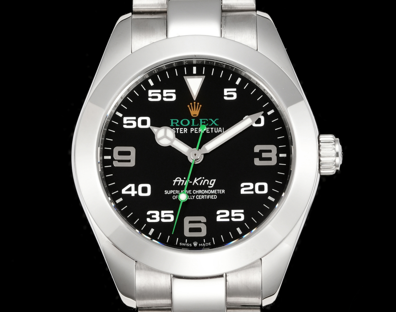 文字盤上の「Air-King」の文字は、1950 年代のオリジナル時計のために特別にデザインされたフォントです。スカイキングは航空の先駆者に敬意を表し、航空の歴史におけるオイスター ウォッチの重要な役割を称えています。