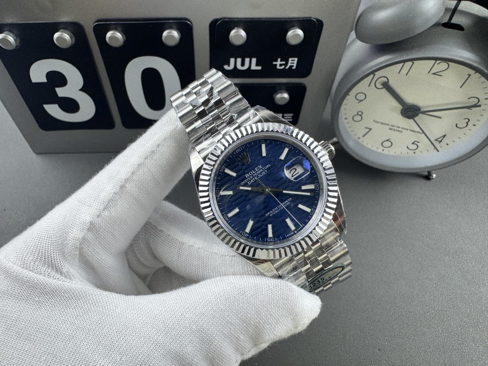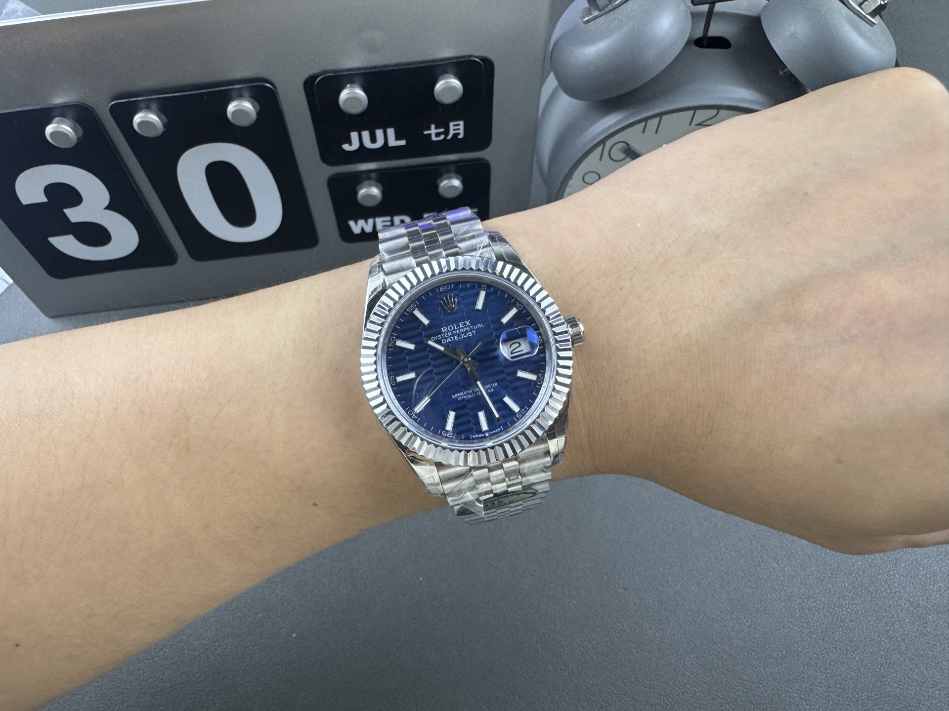 ロレックス デイトジャスト、ホワイトシェルブルー、ウェーブパターン、41mm 3235一体型機械、実際の出荷写真