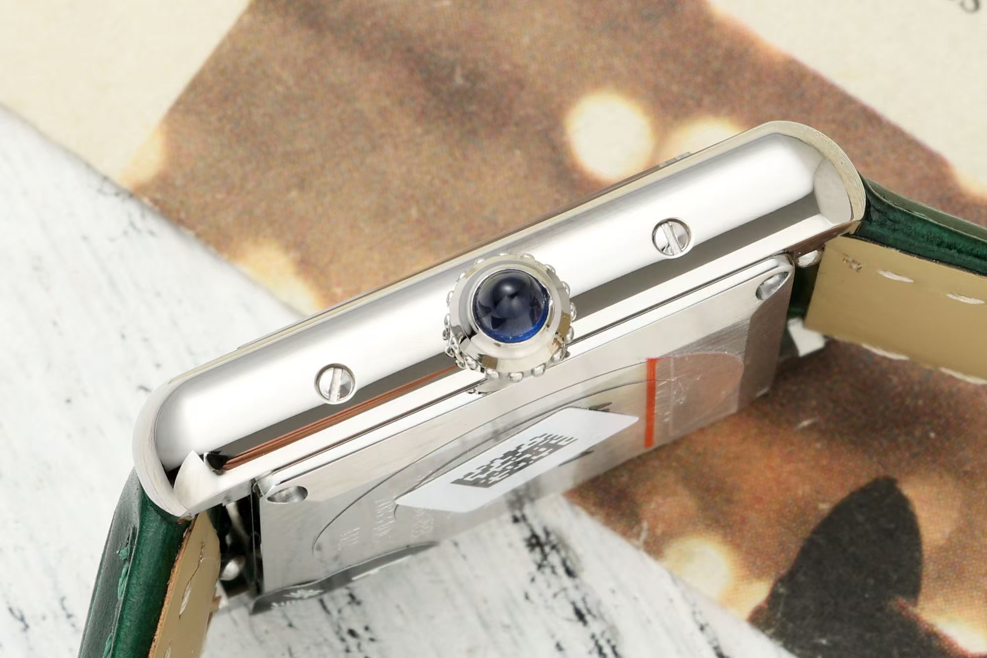 滑らかな弧と鋭い角は、モダンさとファッションの感覚を示しています。タンク トラック スタイルのラグと八角形のリューズには、カルティエの象徴的なブルー スピネルがあしらわれており、非常に目立ちます。 【文字盤】文字盤はクラシックなローマンスケールで表示されます。ホワイトの文字盤にブルースチールの針がマッチしています。