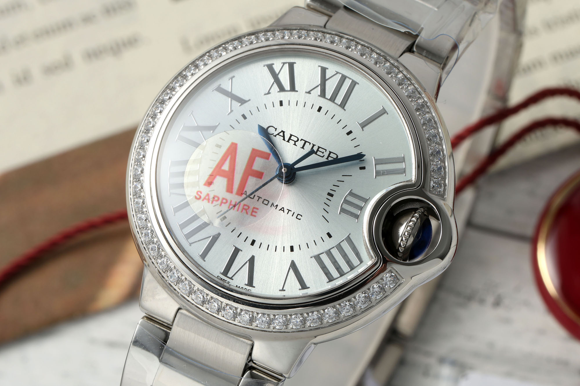 AFカルティエ 33mm ブルーバルーン シリーズ ウォッチ 【ケース】直径 33mm、厚さ 10mm、オリジナルと一致!ステンレススチールケース、最高級サファイアクリスタルミラー、三日月型開口部は全く同じです 。