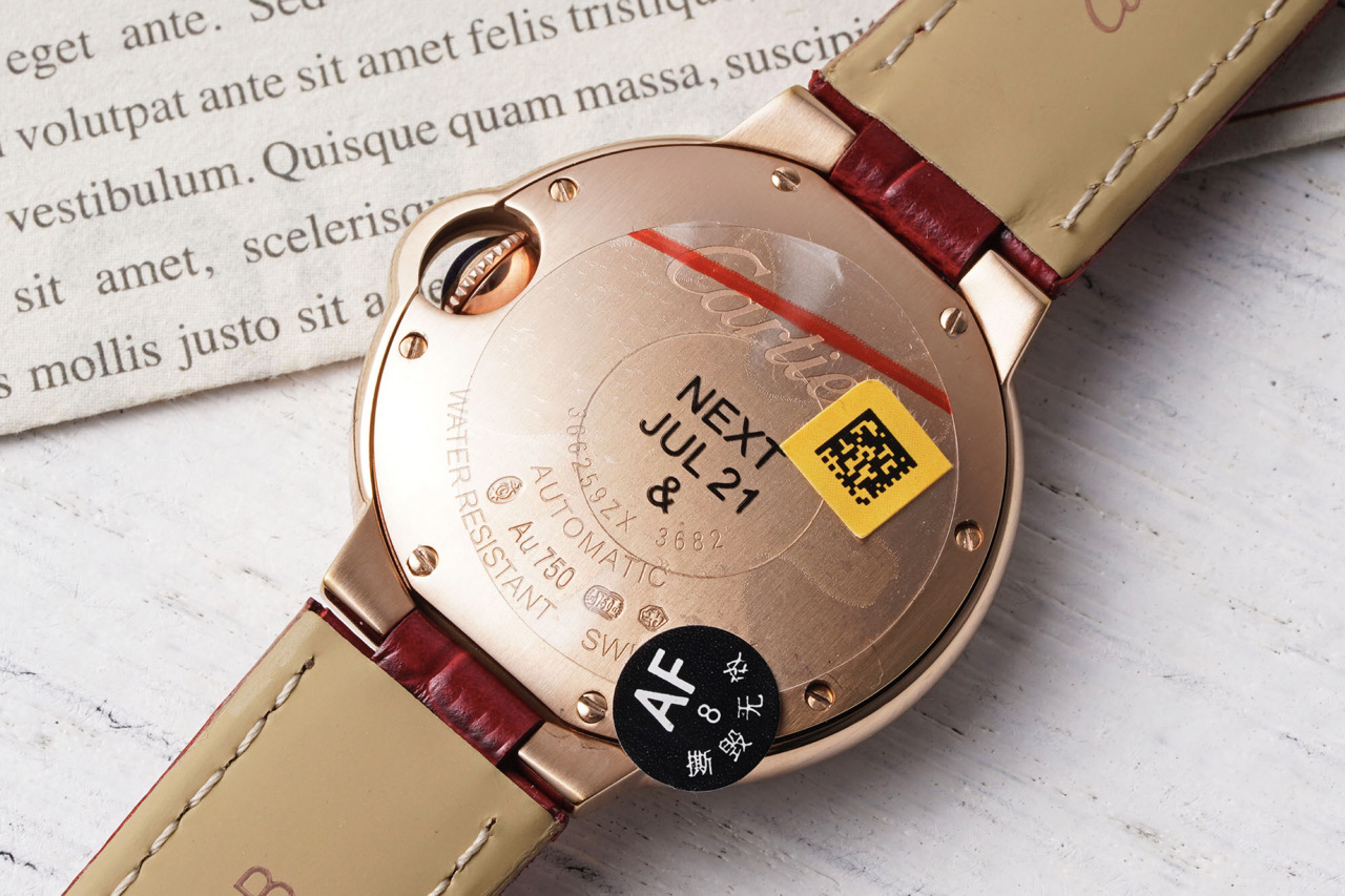 AFカルティエ 33mm ブルーバルーン シリーズ ウォッチ 【ケース】直径33mm、厚さ10mm、オリジナルと一致 !ステンレススチールケース、最高級サファイアクリスタルミラー、三日月型開口部は全く同じです 。