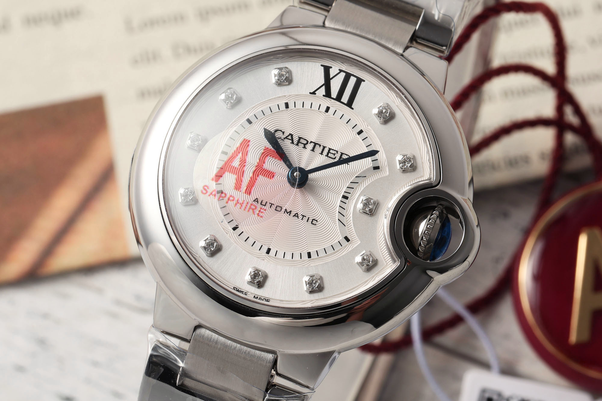 AFカルティエ 33mm ブルーバルーン シリーズ ウォッチ 【ケース】直径33mm、厚さ10mm、オリジナルと一致 !ステンレススチールケース、最高級サファイアクリスタルミラー、三日月型開口部は全く同じです 。
