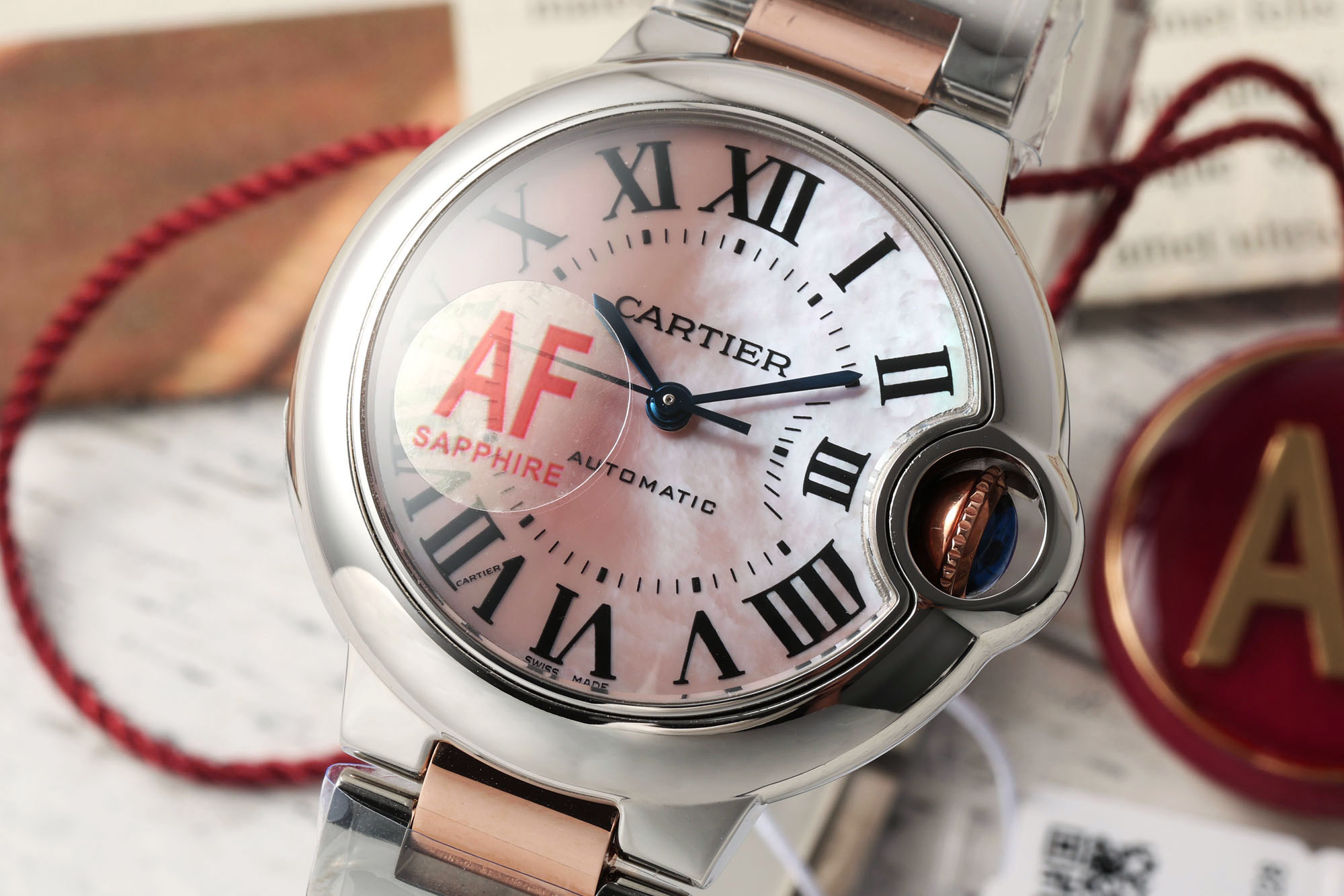 AFカルティエ 33mm ブルーバルーン シリーズ ウォッチ 【ケース】直径 33mm、厚さ 10mm、オリジナルと一致 !ステンレススチールケース、最高級サファイアクリスタルミラー、三日月型開口部は全く同じです 。