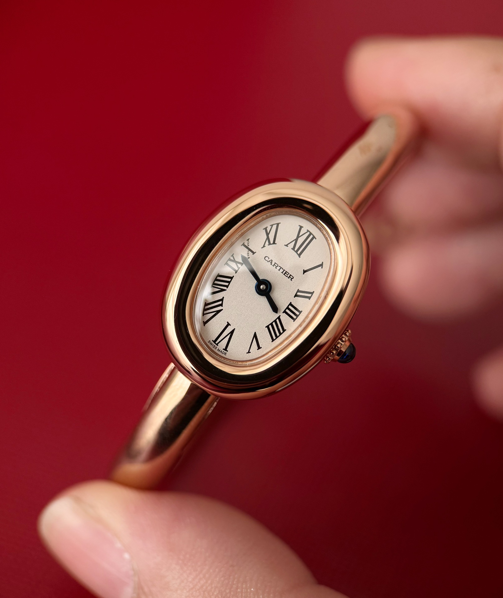 幾何学的な特徴の強いシンプルなオーバルシェイプからインスピレーションを得た時計は、丸みのあるふっくらとしたオーバルシルエットを採用し、フェミニンなスタイルを表現しています。