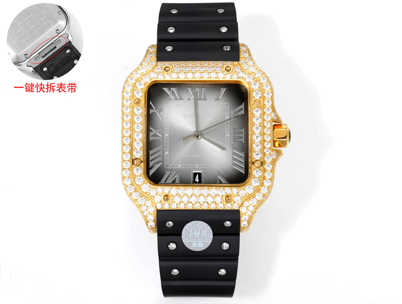 AFプロセス処理で跡が残らない ! 5【時計ストラップ】人間工学に基づいたSmartLink分解システムを搭載し、オリジナルと完璧に交換可能な高級感のあるフッ素ゴム製ストラップペアストラップはスチールストラップ、ベルト、テープの3つのストラップで使用できます。 6【サイズ】メンズモデル 39.8mm カルティエの2つの実用発明「SmartLink」ブレスレット調整装置と「QuickSwitch」ストラップ迅速交換装置を搭載! 【ケース径39.8mm、厚さ9.08mm】