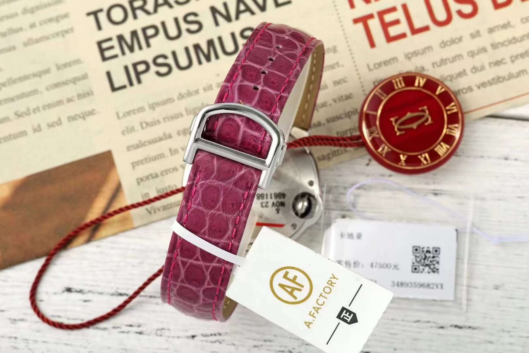 AFカルティエ 33mm ブルーバルーンシリーズ時計 (輸入高級アメリカワニ革ストラップを装備、複数色あり ) 【ケース】直径 33mm、厚さ 10mm、オリジナルと一致 !ステンレススチールケース、最高級サファイアクリスタルミラー、三日月型開口部は全く同じです。
