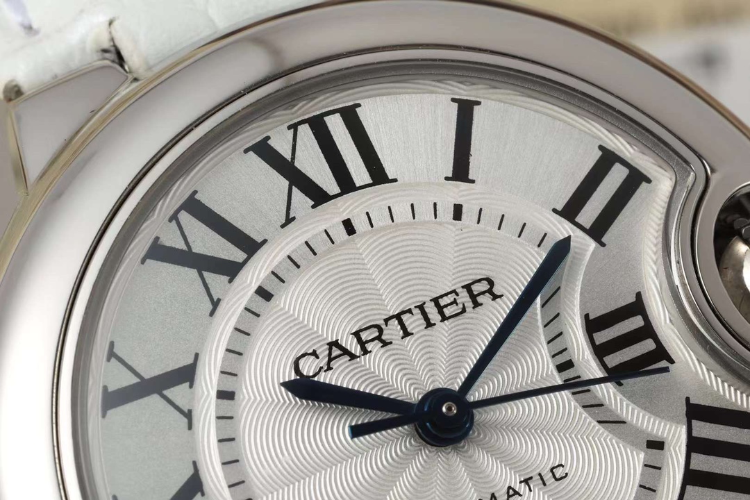 AFカルティエ 33mm ブルーバルーンシリーズ時計 (輸入高級アメリカワニ革ストラップを装備、複数色あり ) 【ケース】直径 33mm、厚さ 10mm、オリジナルと一致 !ステンレススチールケース、最高級サファイアクリスタルミラー、三日月型開口部は全く同じです。