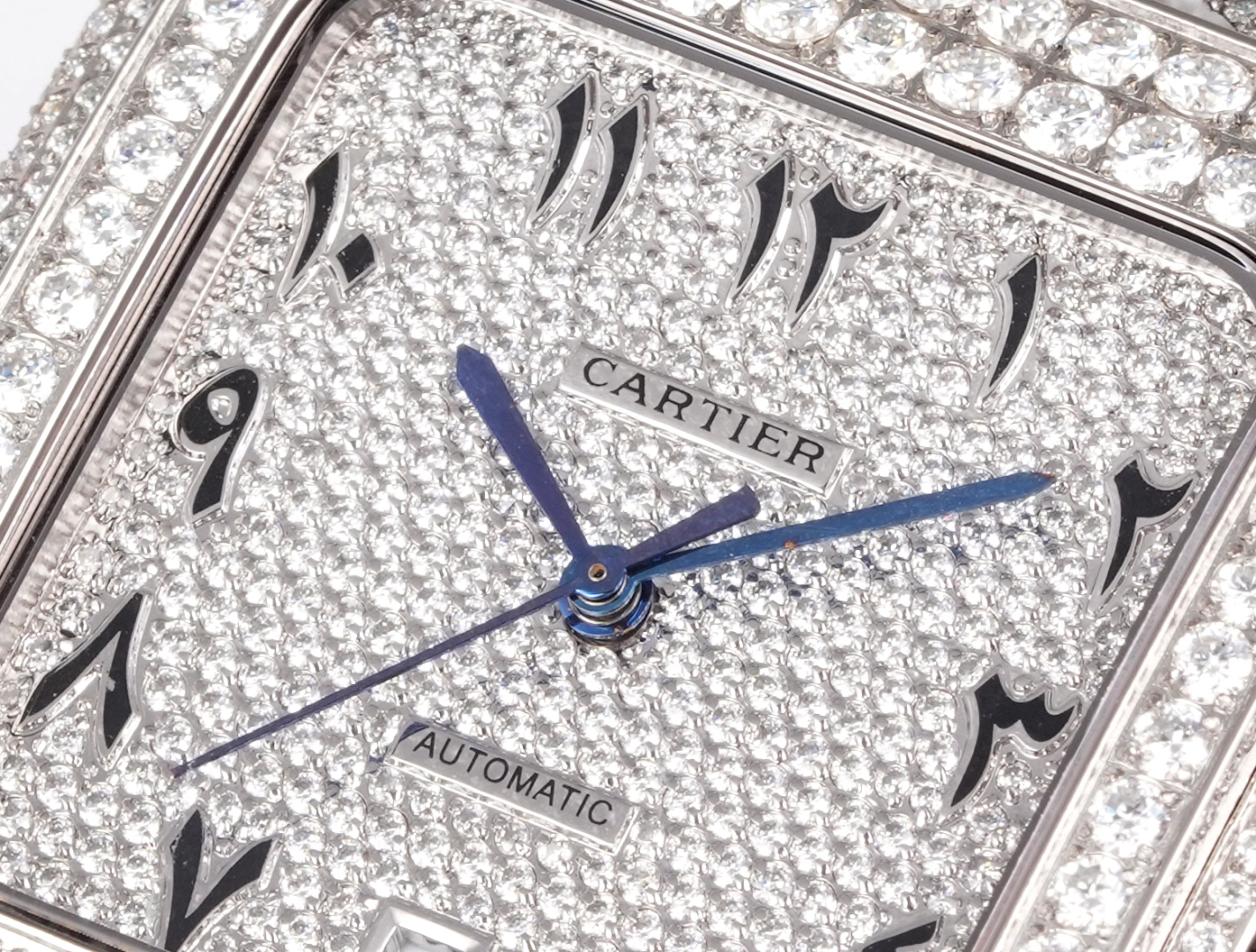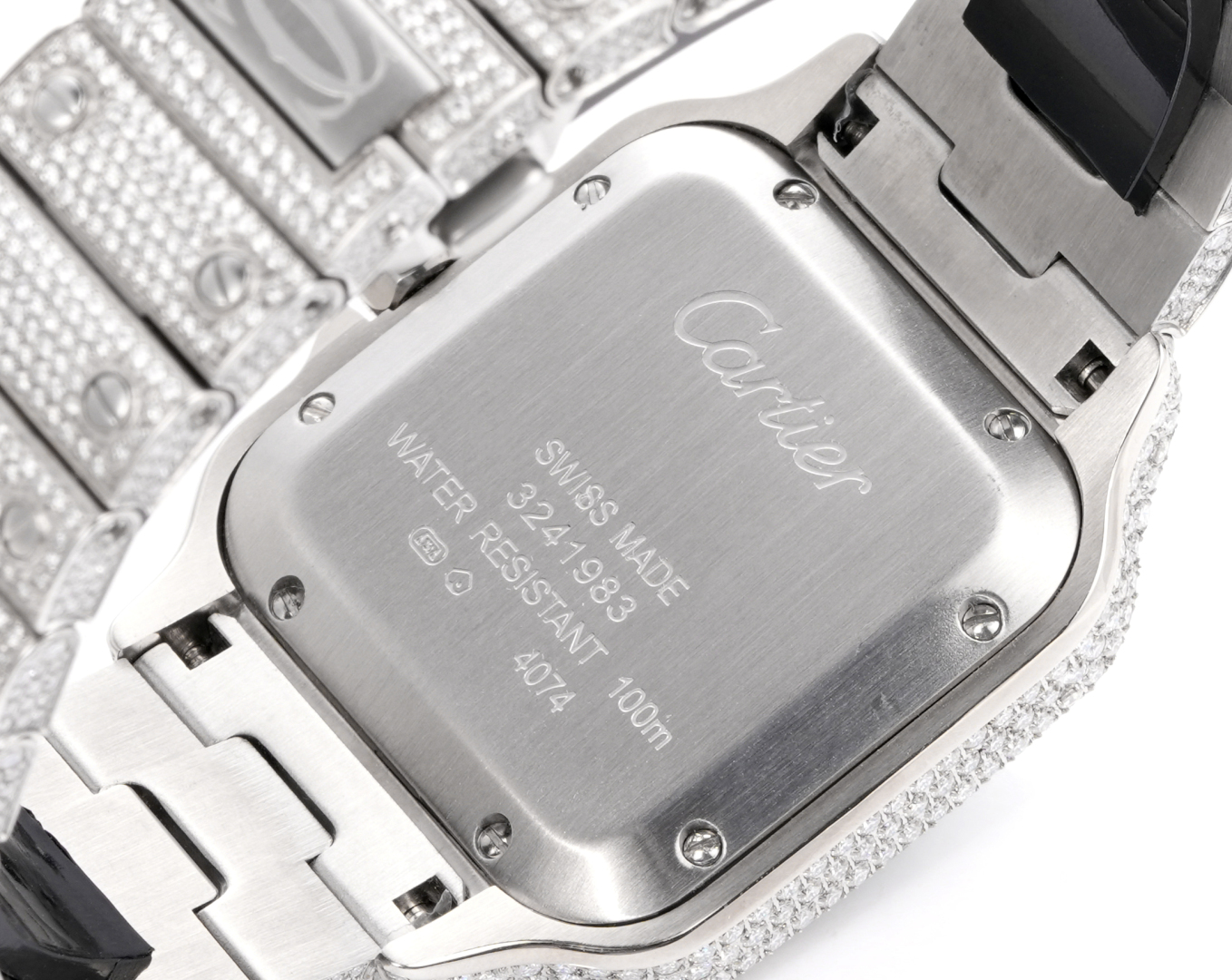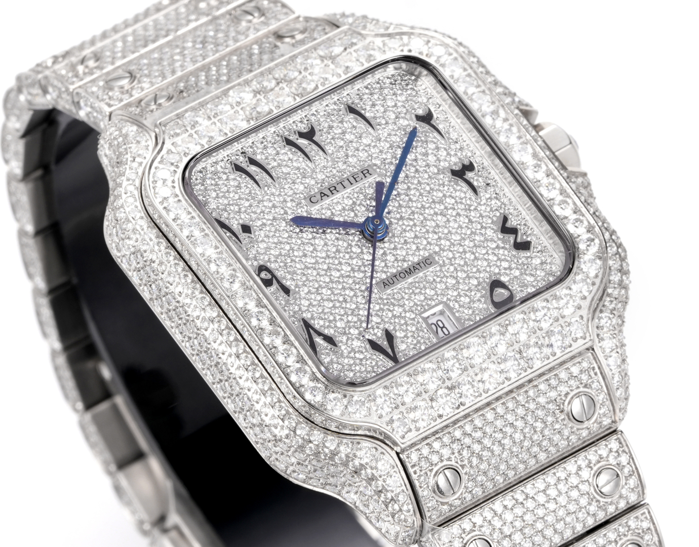 Gypsophila Santos Gypsophila モアサナイト バージョンでは、時計全体に D カラー VVS グレードのモアサナイト ダイヤモンドが手作業で埋め込まれています。すべての石はプロのペンテストに合格できます。モアサナイト ダイヤモンドの屈折率は 2.65 2 .69 (ダイヤモンド 2.42) です。ダイヤモンドと同等の光沢を持ち、「ファイアーシャイン」がより強く、ダイヤモンドに次ぐ硬度を持ち、インレイ加工には派手な形状の不規則なインレイ(フラワー)を採用 。セッティング)は、市場のモアサナイト加工技術とは異なり、石は非常に緻密で隙間がないため、石がしっかりしているという多くのお客様の悩みの種を解決します。 316Lステンレス鋼素材、時計ヘッドサイズ40MM、サファイアガラスミラーS1絶妙に推奨されるメンズ機械式時計