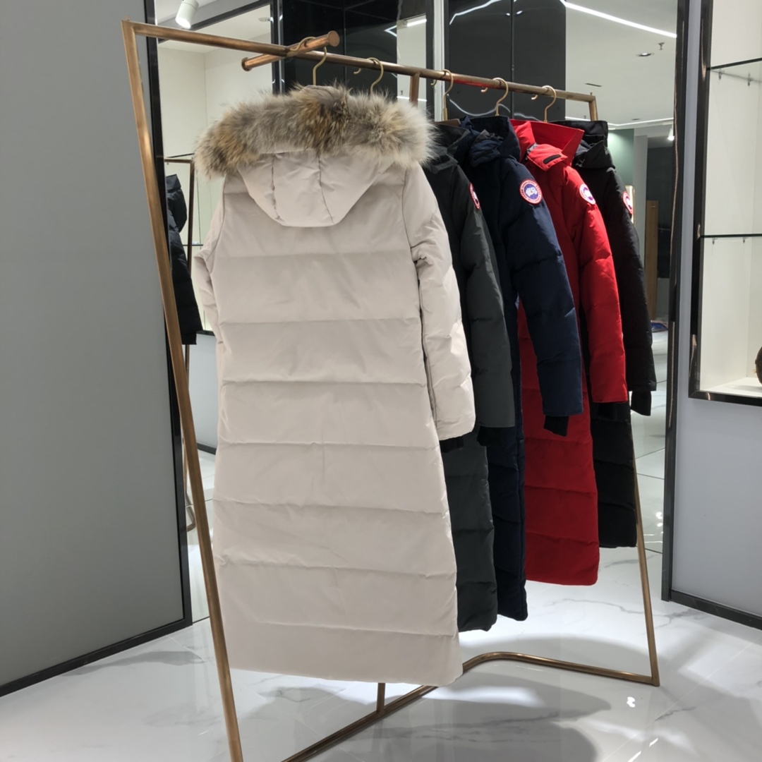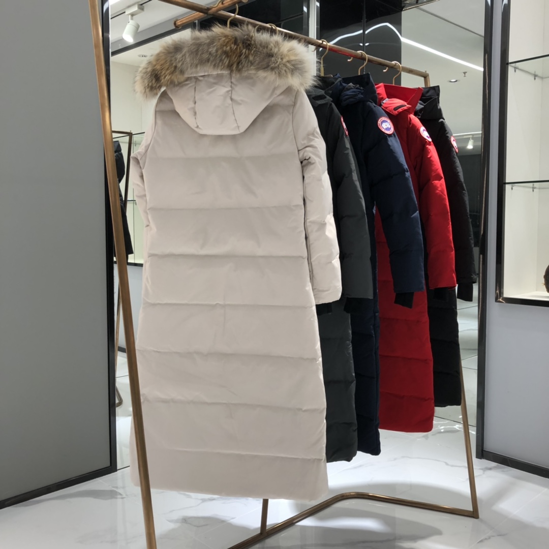冬の間は下にストッキングを履いても大丈夫ですよ カナダグースのミスティークロングダウンジャケットは、全シリーズの中で最長です 。ビッググースは、レベル5の防寒性を備えた唯一の膝丈ダウンジャケットです。これはビッググースのアイテムの中で最初に完売したアイテムの 1 つでした。