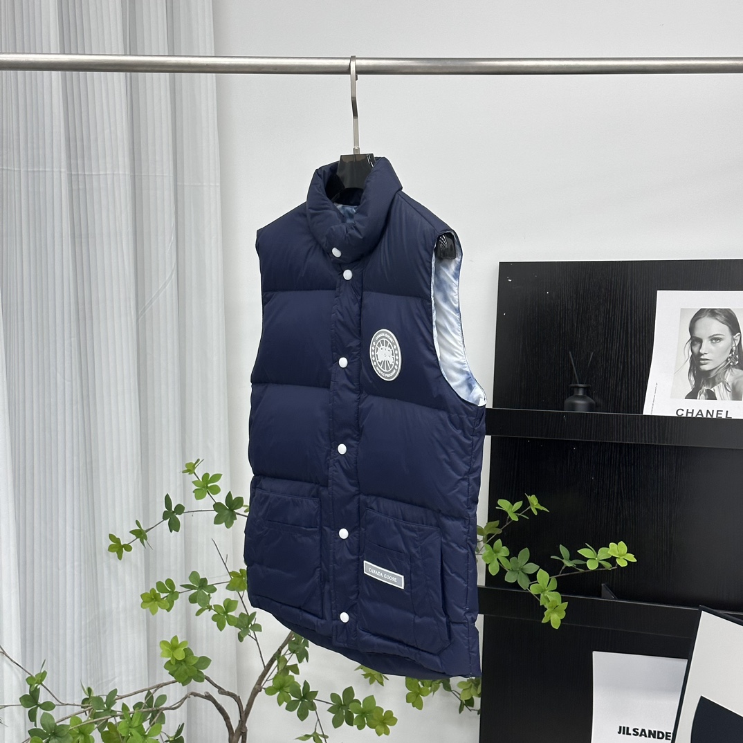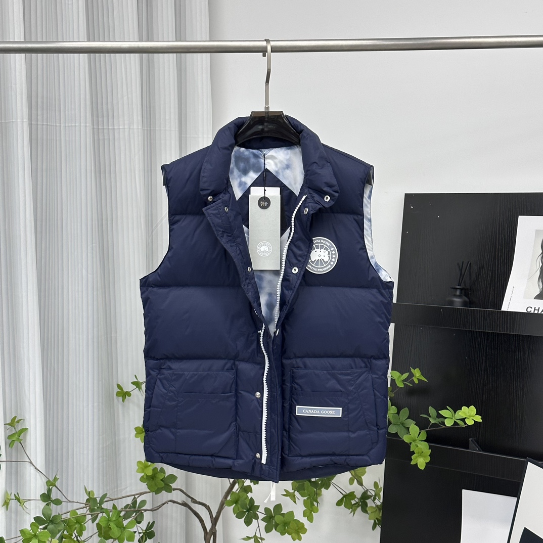 【】カナダグースホワイトレーベル グレイシャーダウンベストムードブルー