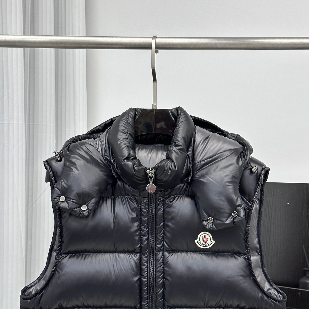 。 マスク モンクレール FW21 ペイント プリン シーム フード マスク フード付きベスト
