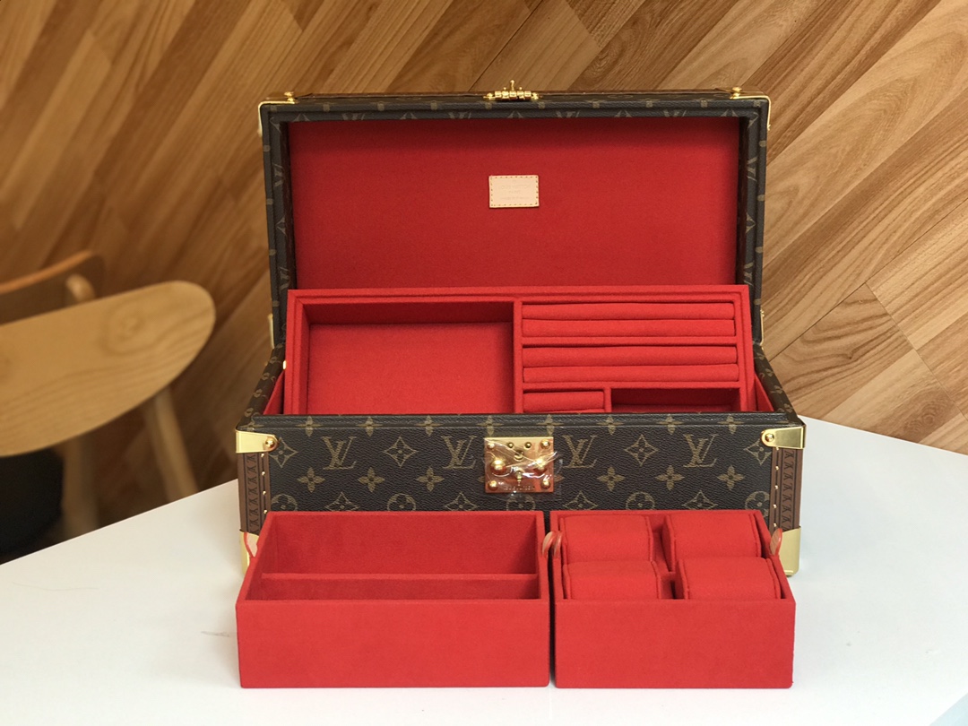 【ルイヴィトン】多宝聚財トランク 小物収納ボックス 2段仕切り 時計・アクセサリー収納に 上質な木製ハードケース