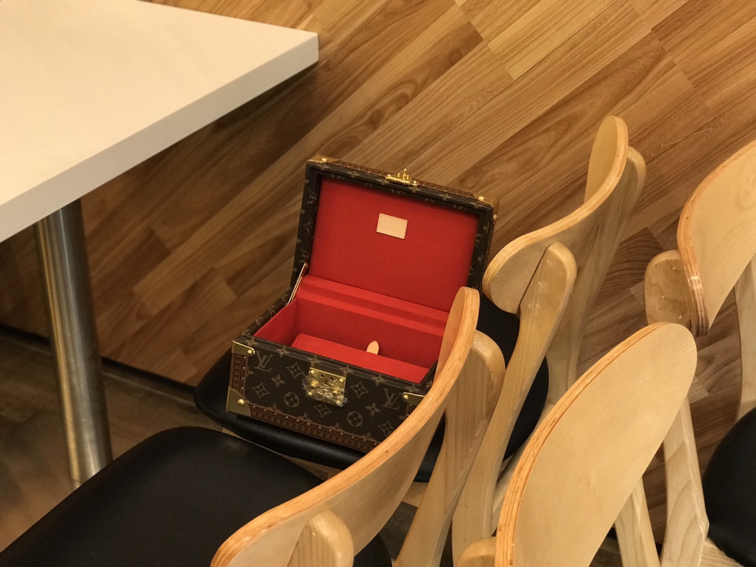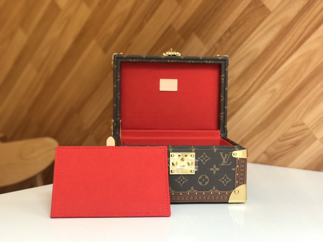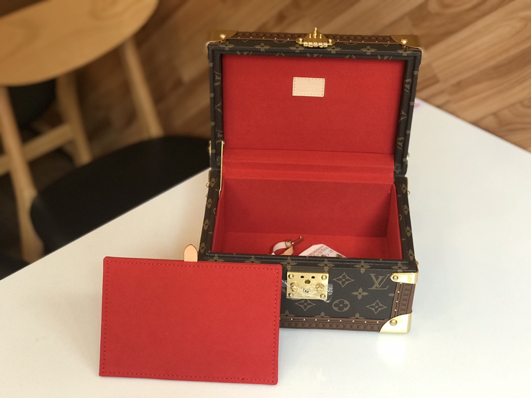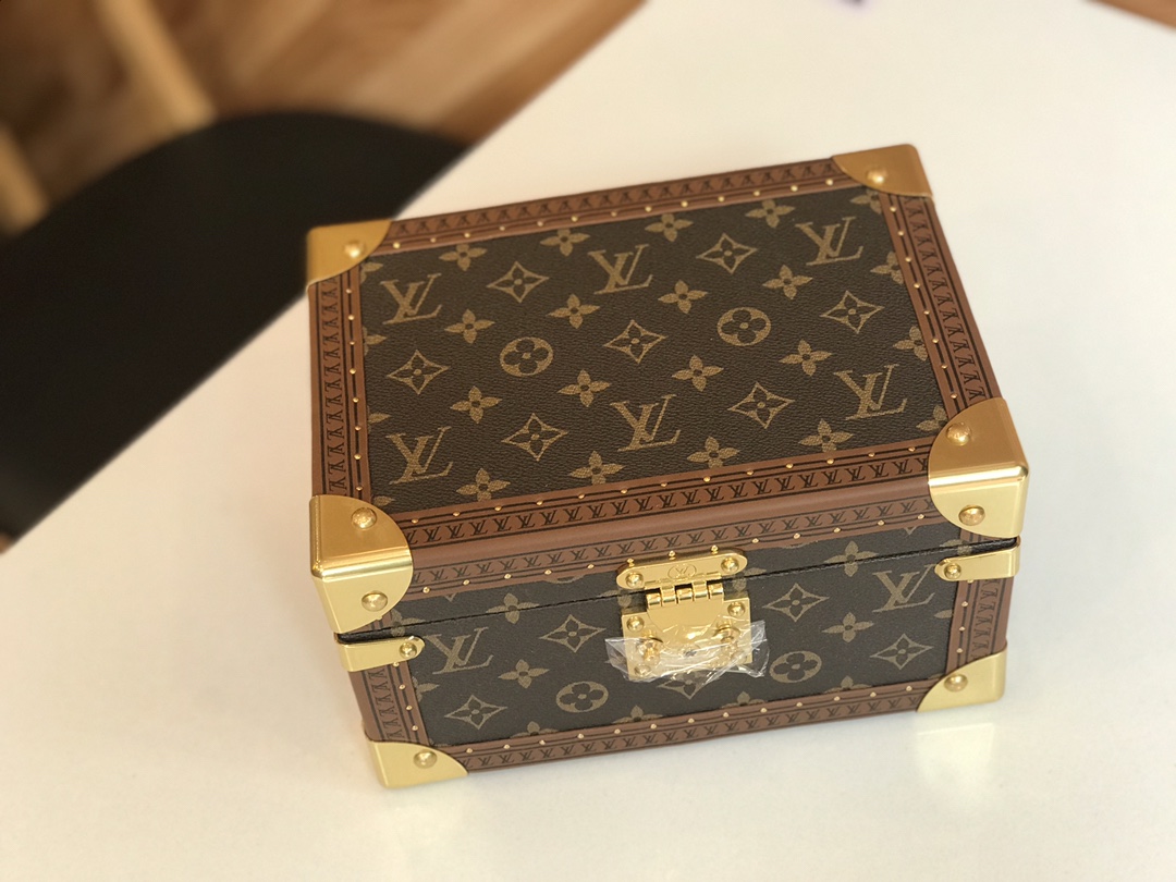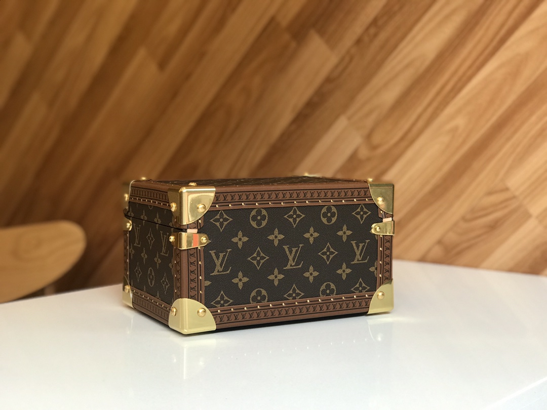 【ルイヴィトン】トランク型収納ボックス ミディアムサイズ モノグラム帆布 カラフル内張り 高級感のある小物整理