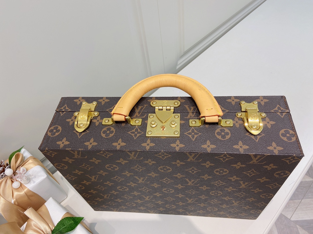 【ルイヴィトン】ジュエリーボックス トランク型 樹膏皮ハンドル 鎏金金具 二段収納 上質な仕上げ ギフトに最適