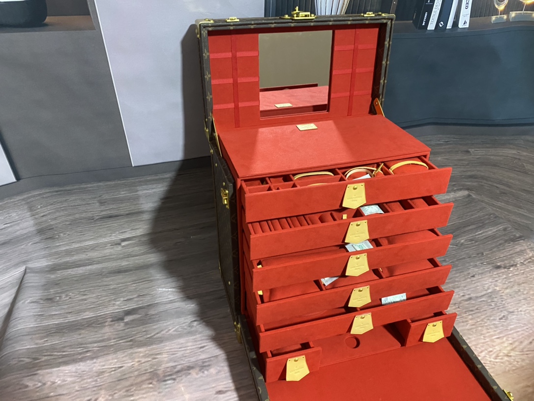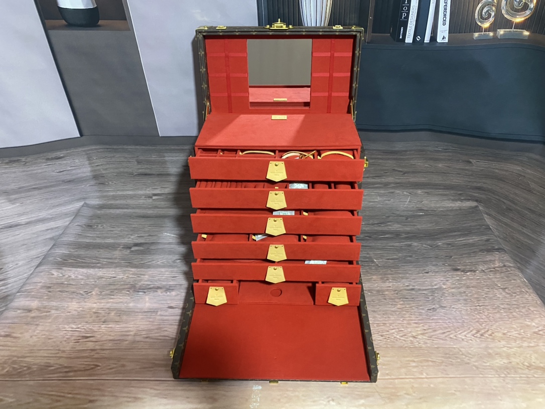 【ルイヴィトン】トランク型ジュエリーケース モノグラム&正赤レザー 上質な仕上げ 高級感のある収納ボックス