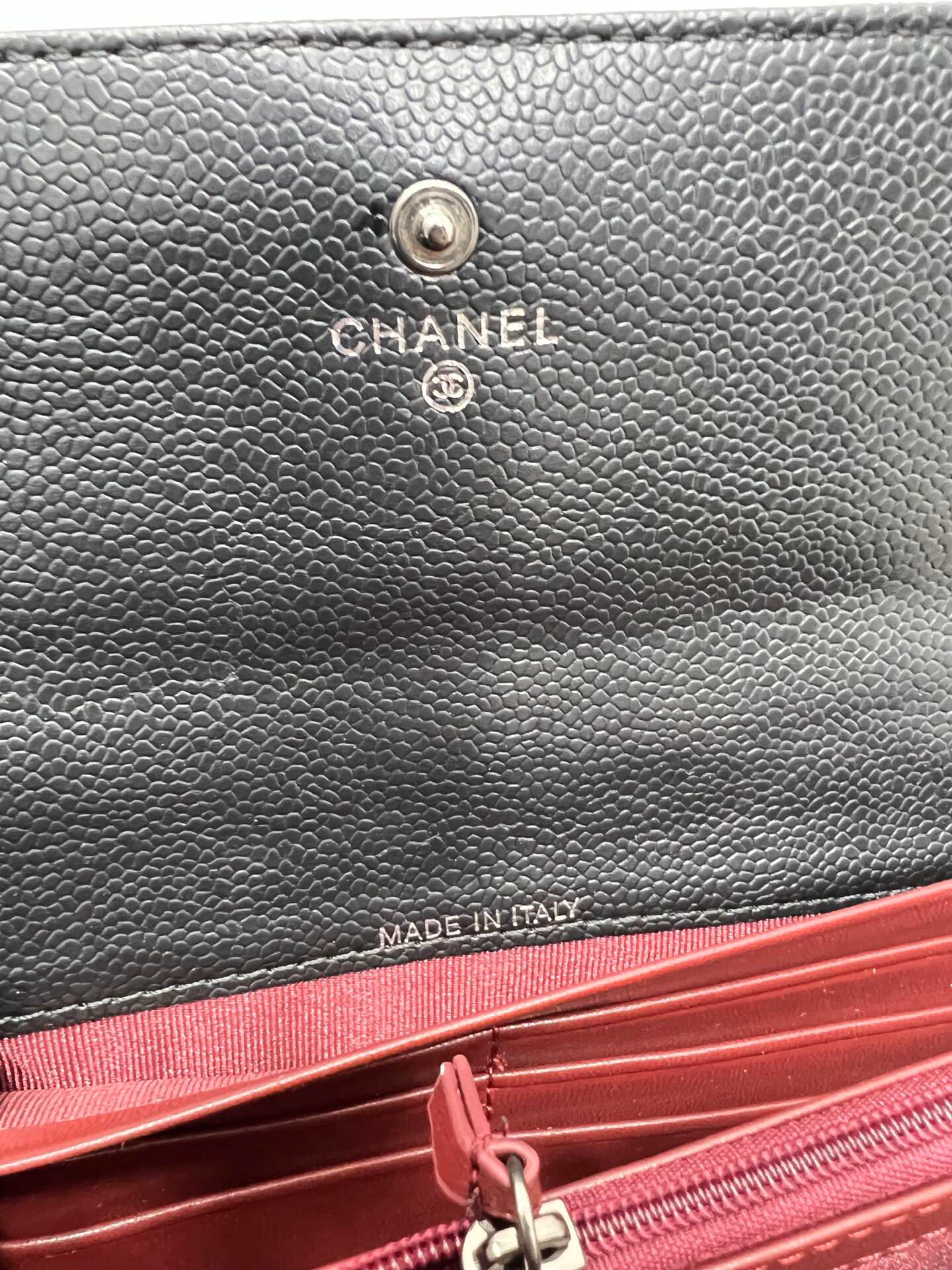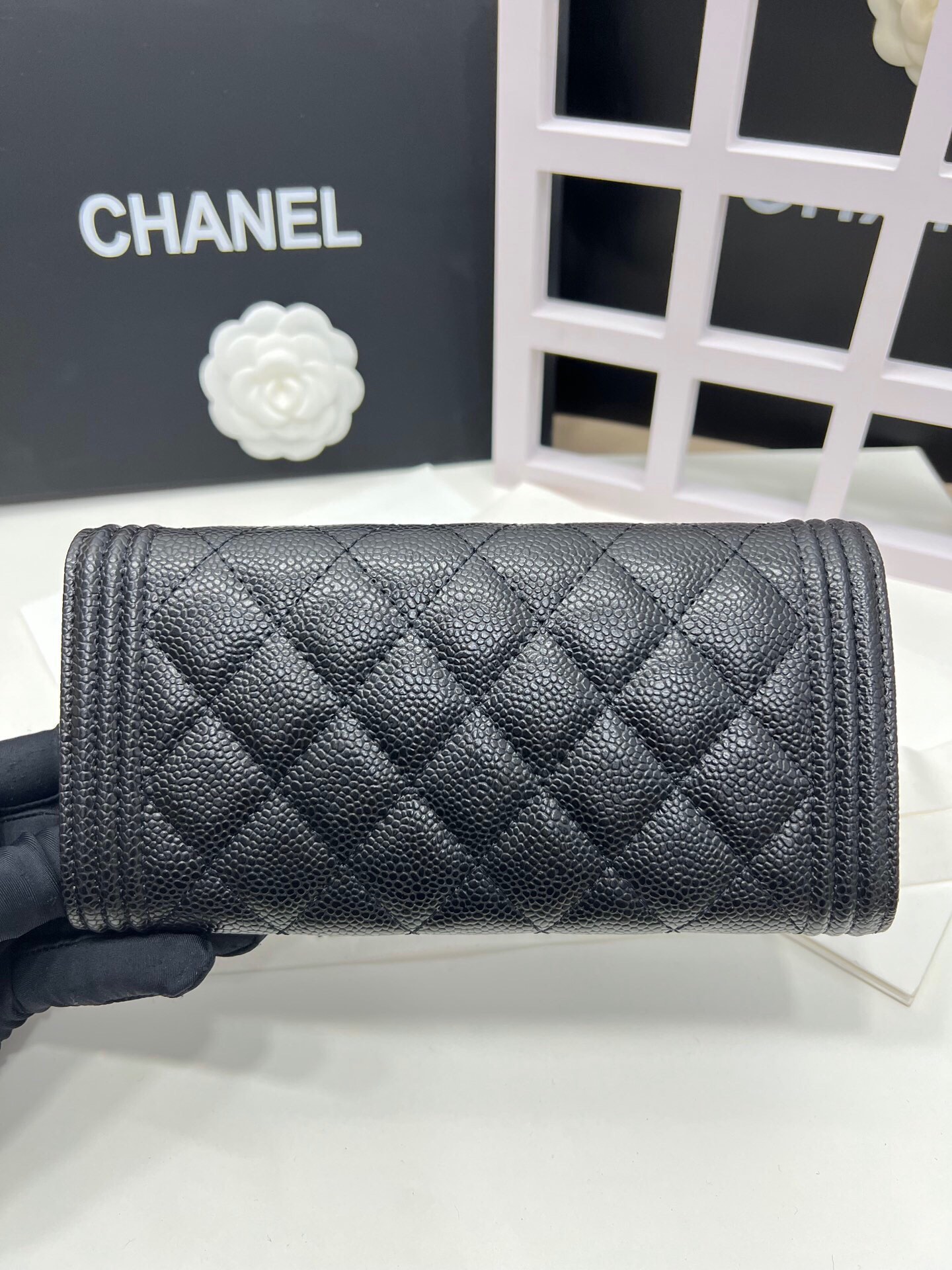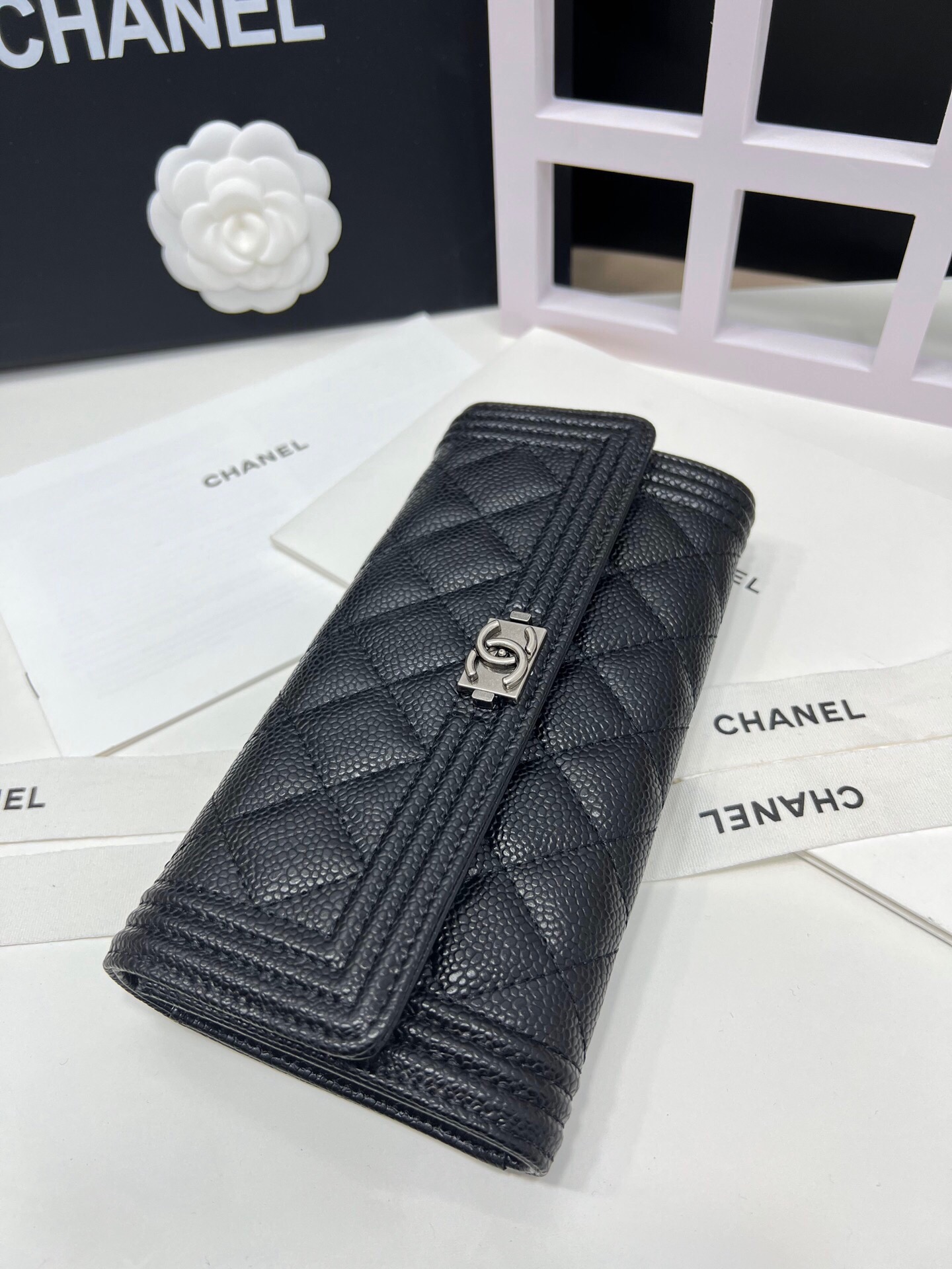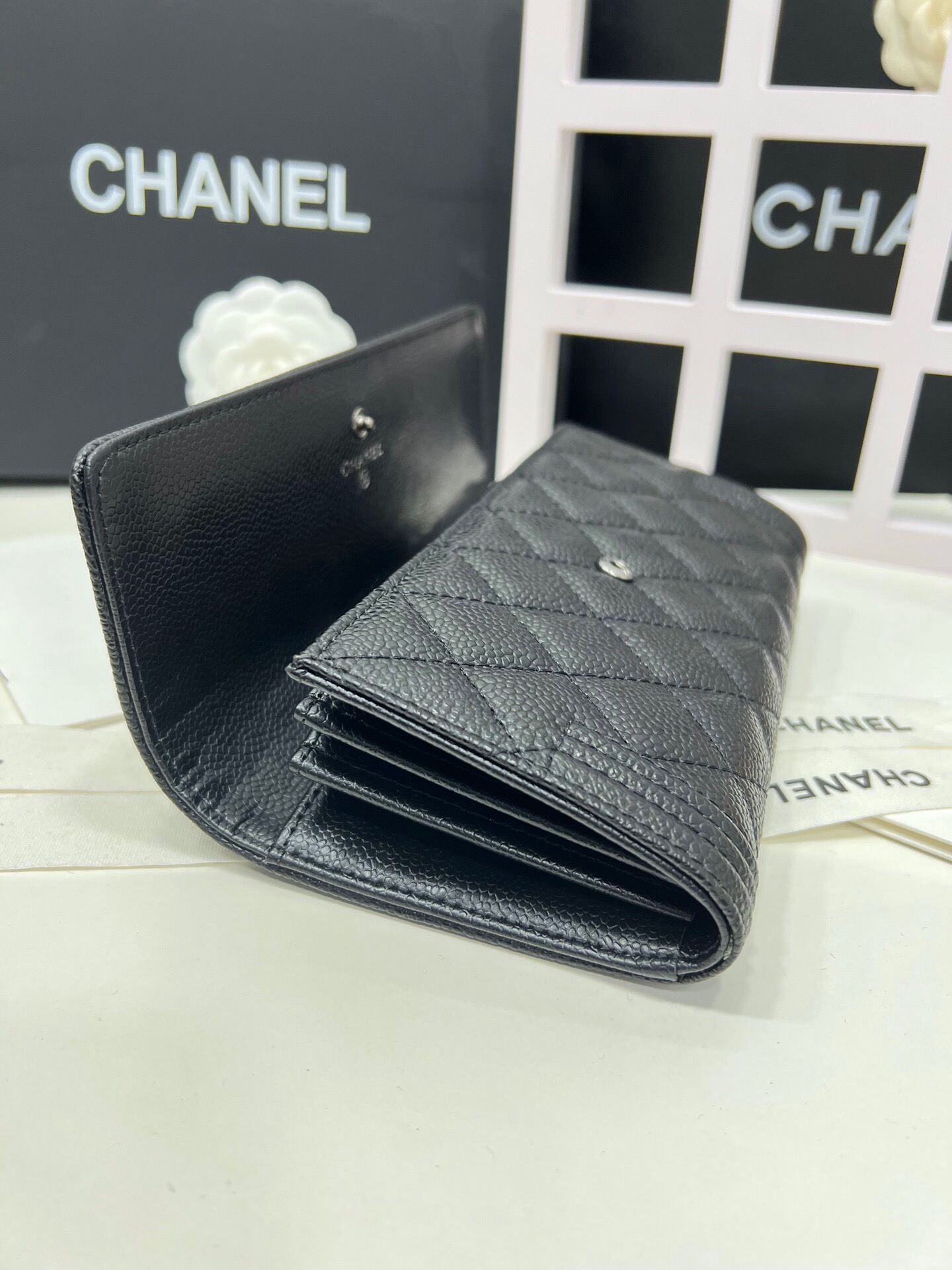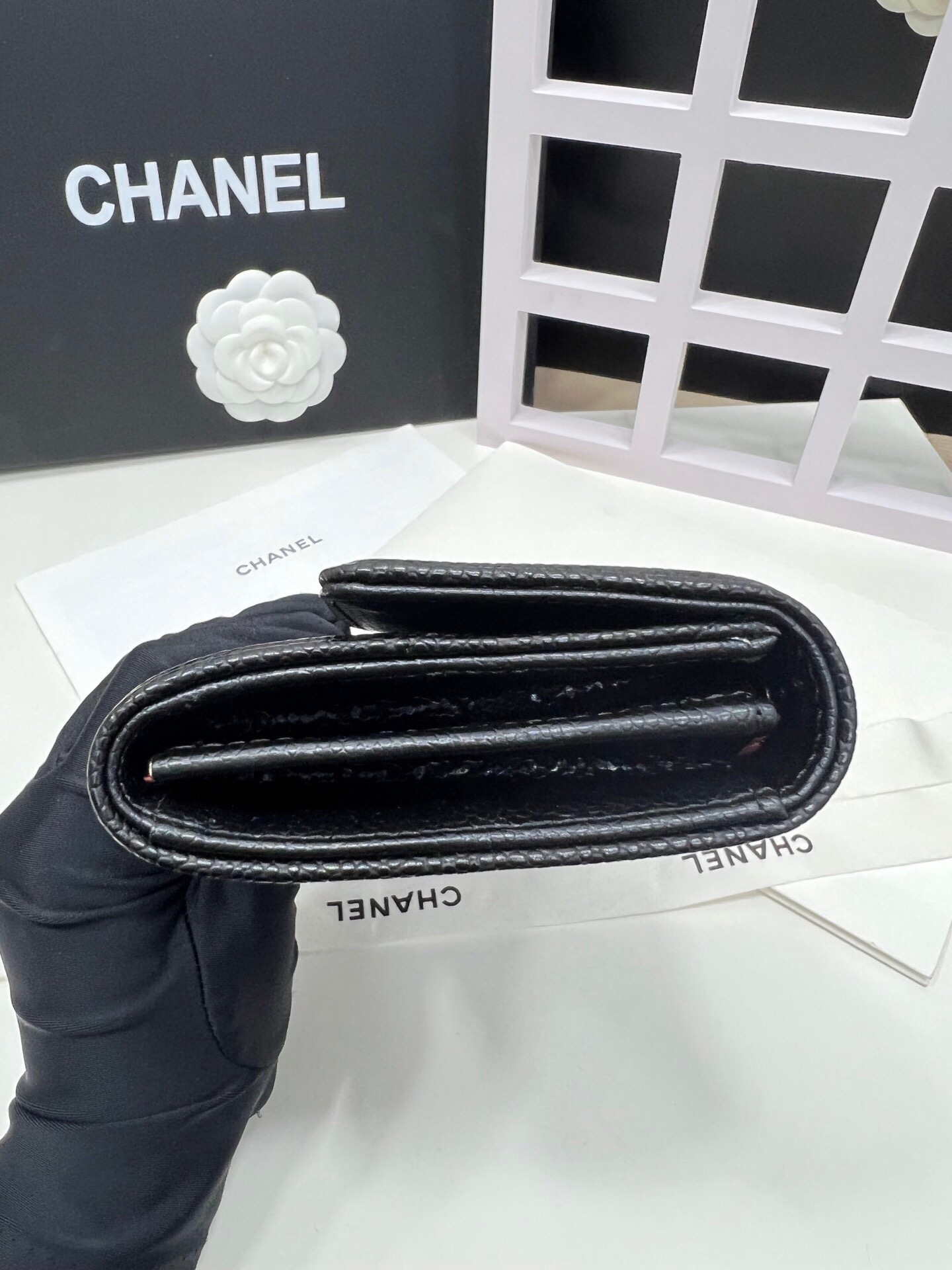 【シャネル】キャビアスキン トリプリーツウォレット ココマーク金具 上品なブラックの長財布