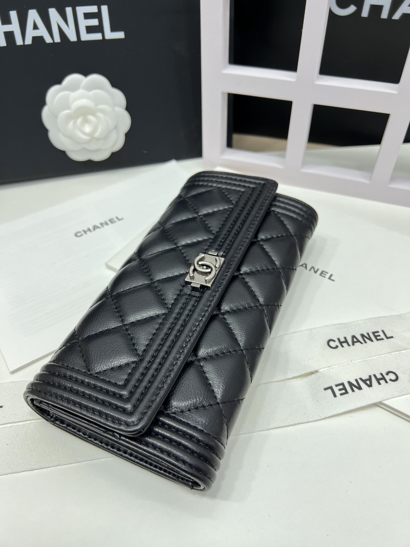 上質なキャビアスキンに、輝くココマーク金具が印象的なシャネルの長財布です。しなやかで耐久性に優れた素材は、日常使いにぴったり。ブラックカラーと洗練されたシルエットで、どんなスタイルにも上品に調和します。カードポケットも充実し、実用性も兼ね備えています。ビジネスシーンからちょっとしたお出かけまで、大人の女性の品格を引き立たせる一品です。