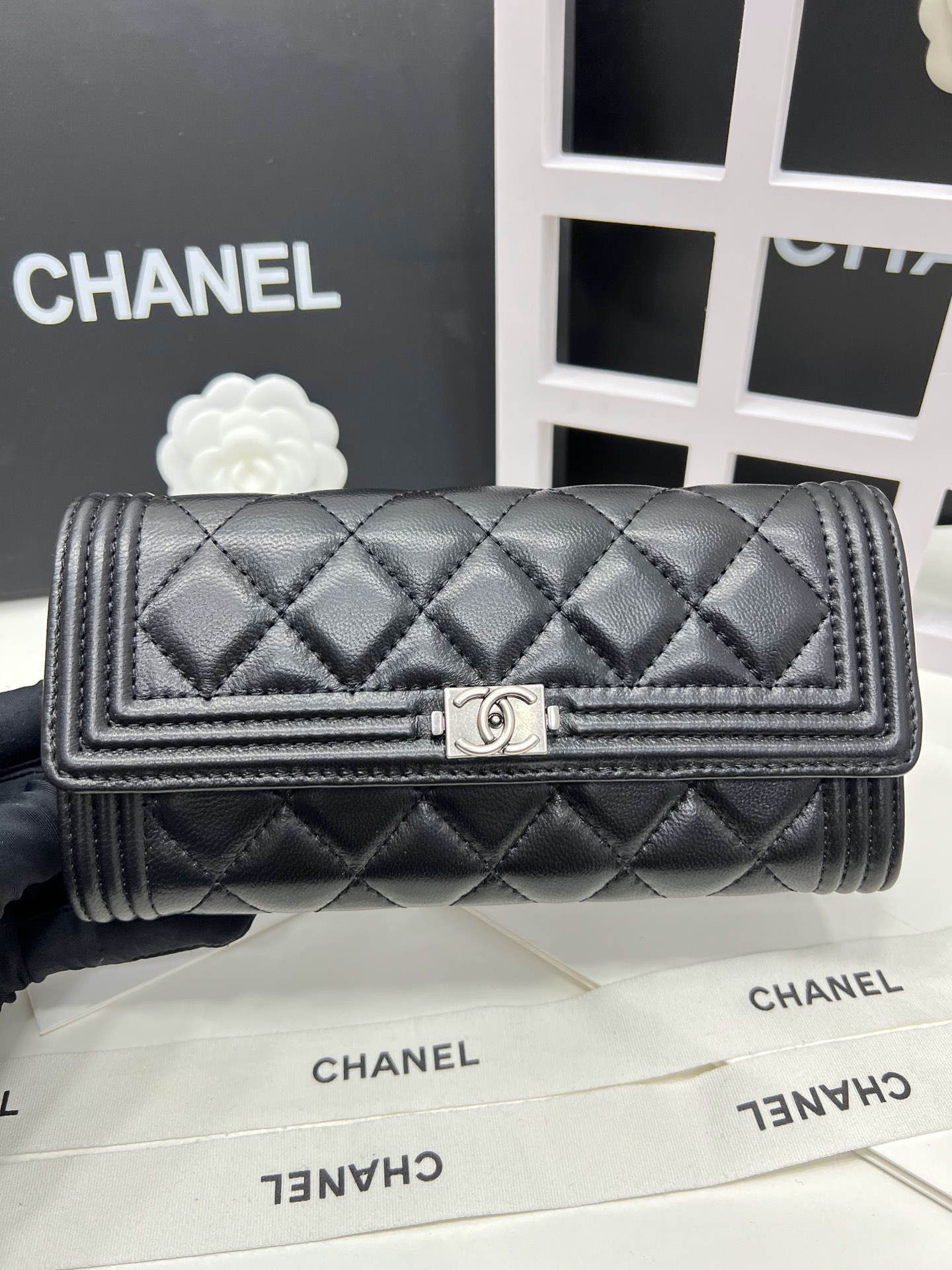 【シャネル】キャビアスキン 長財布 ココマーク金具 上品なブラック レディースウォレット