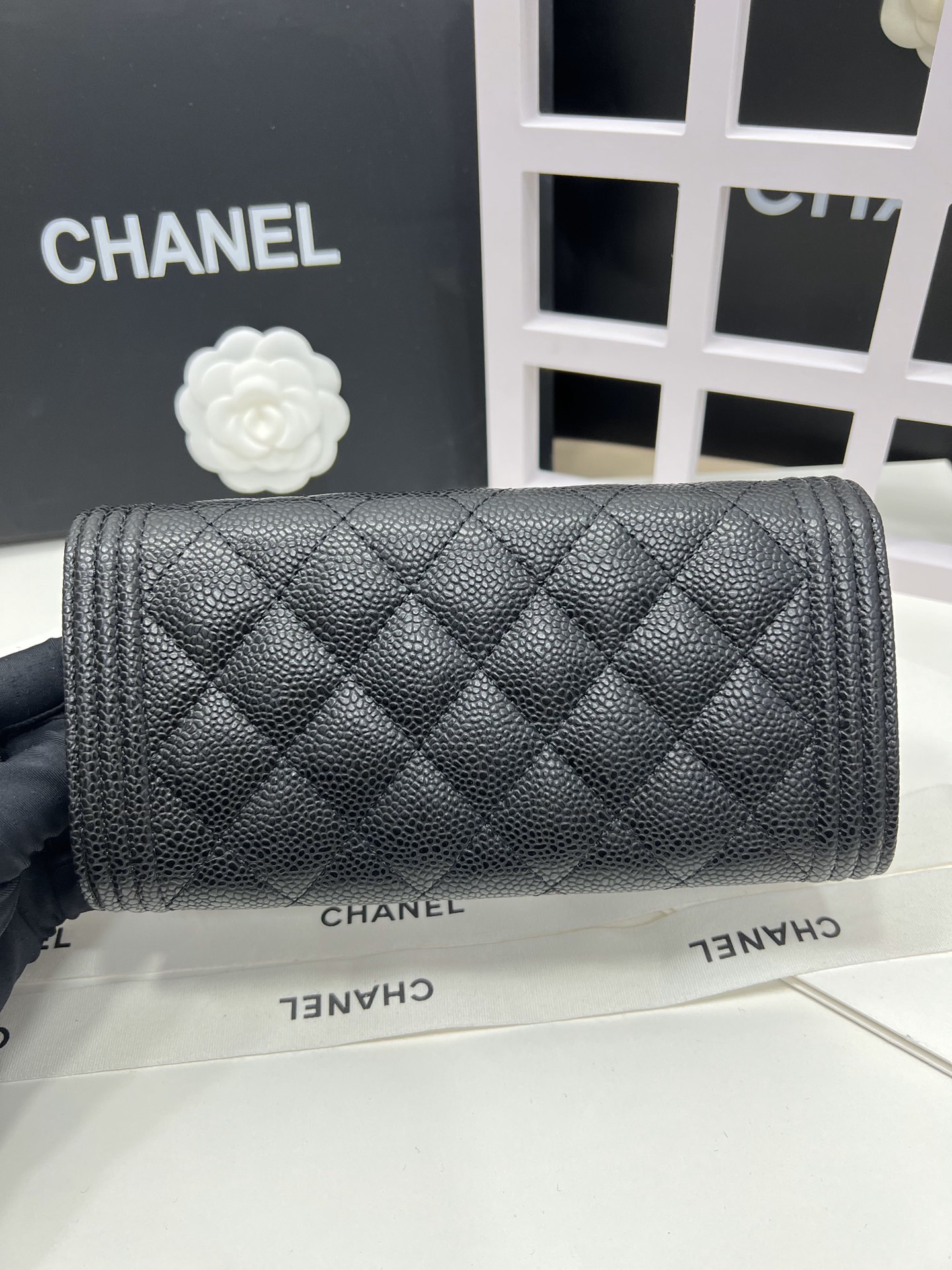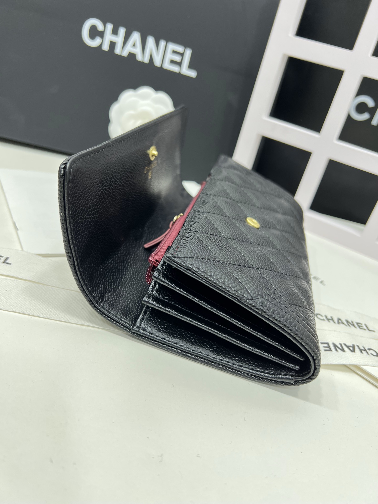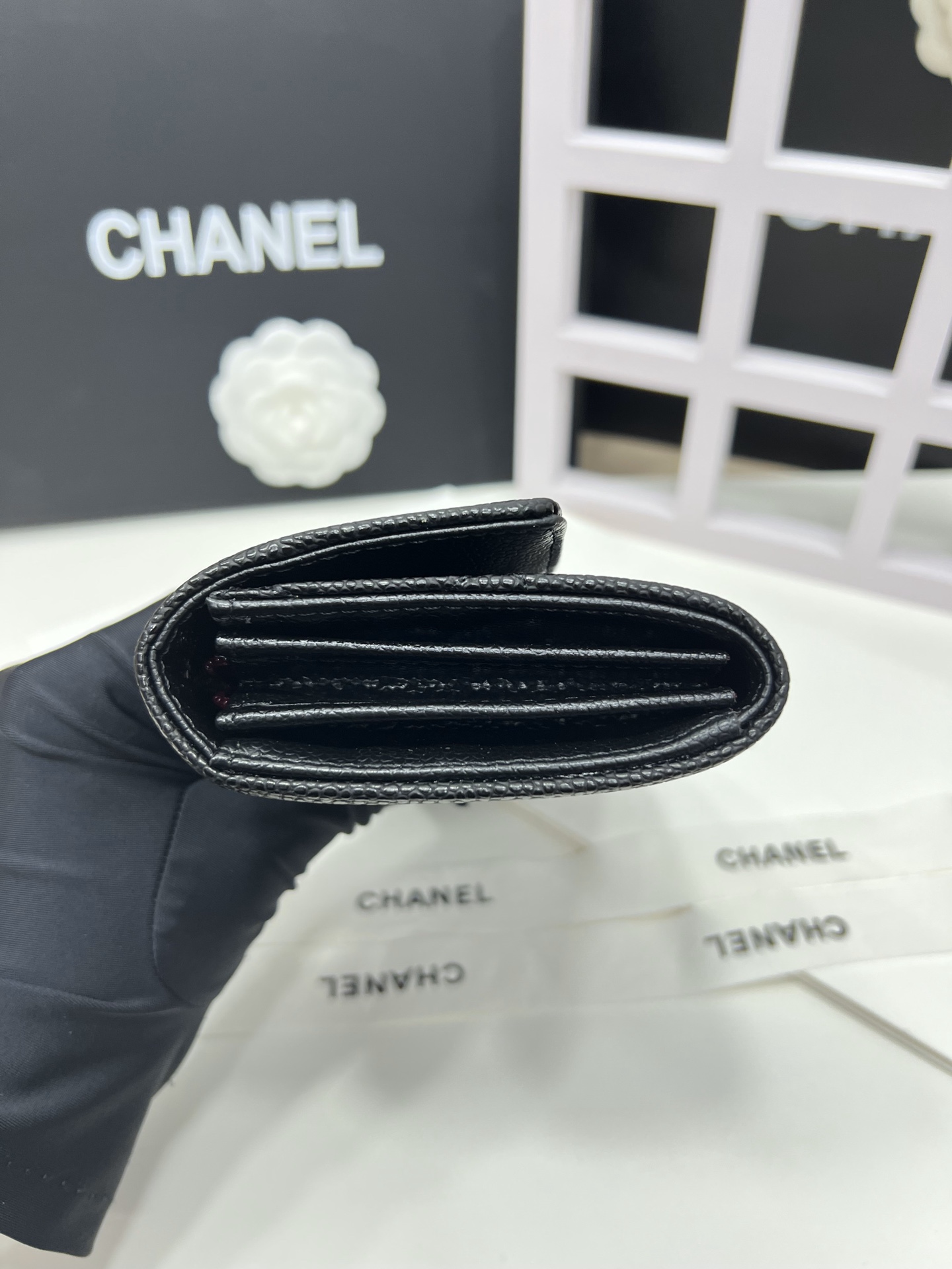 【シャネル】キャビアスキン 長財布 ココマーク金具 上品なブラックのレディースウォレット