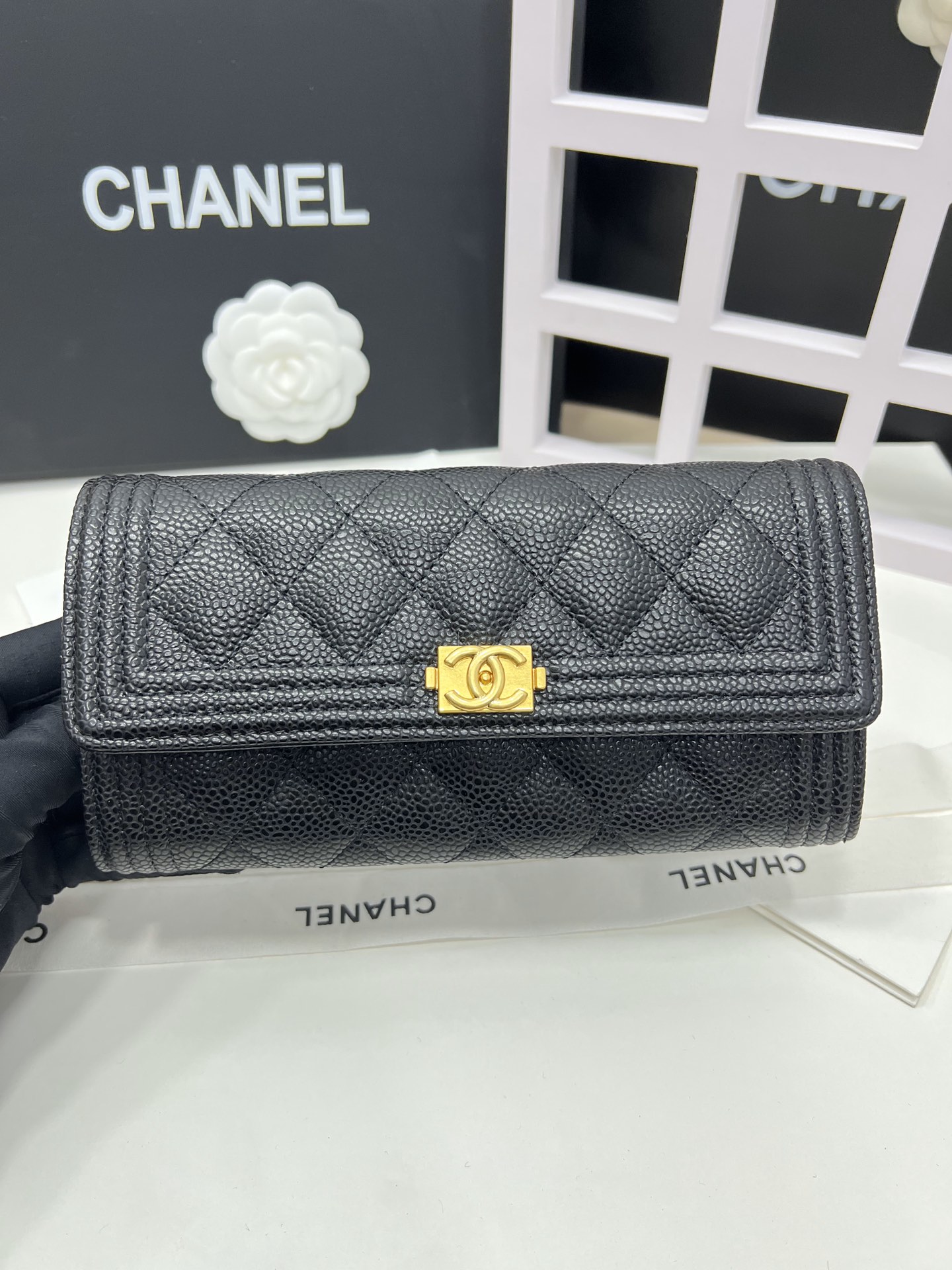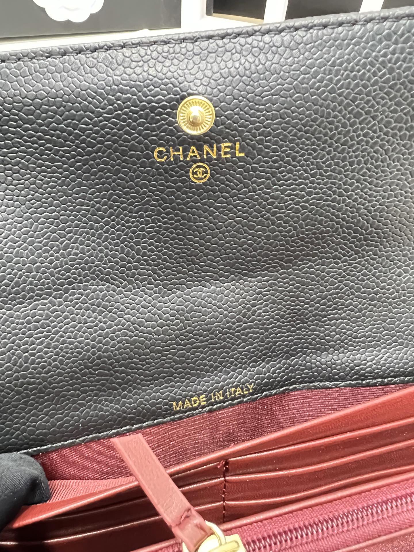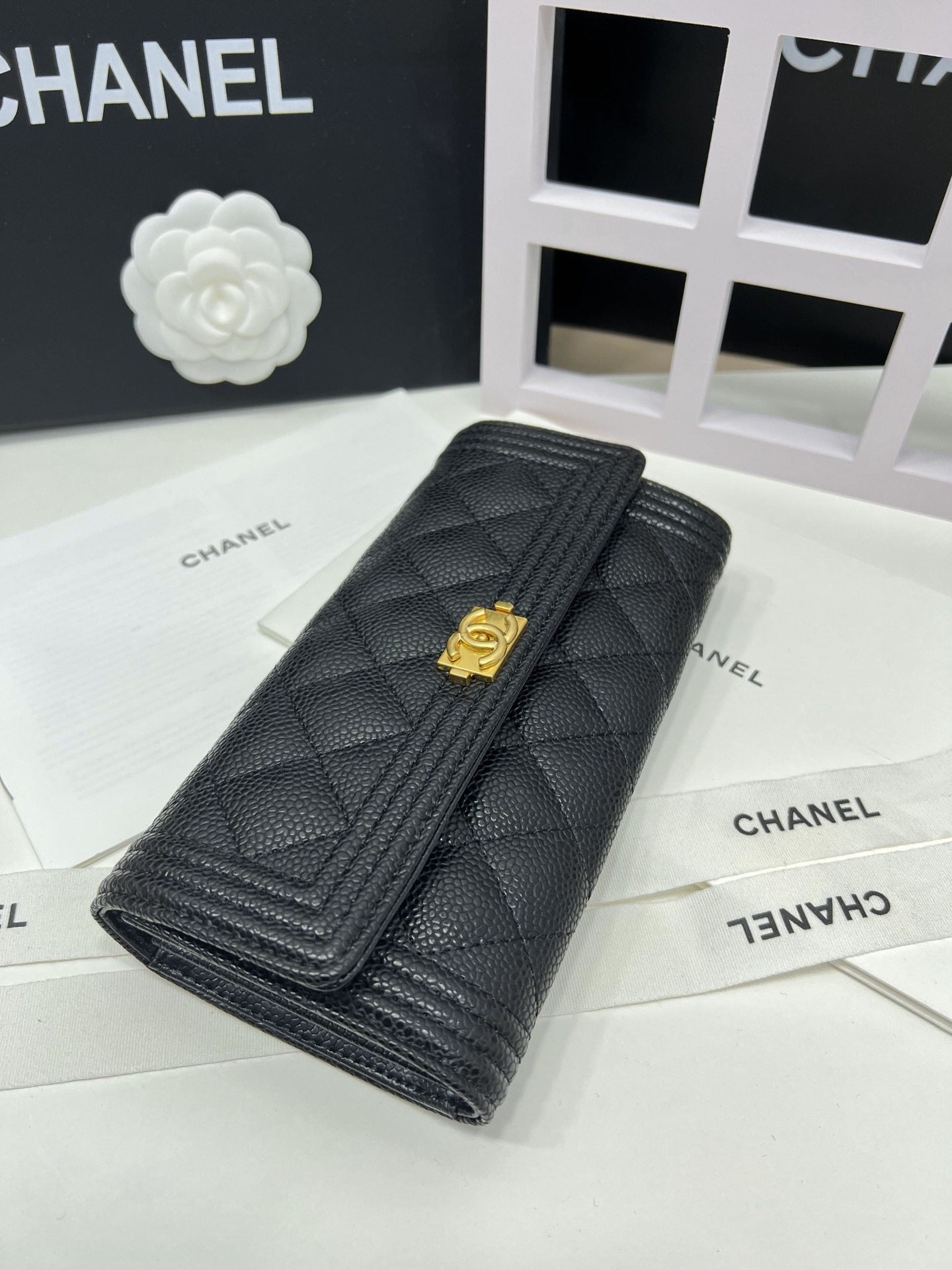 【シャネル】キャビアスキン 長財布 ココマーク金具 上品なブラックのレディースウォレット