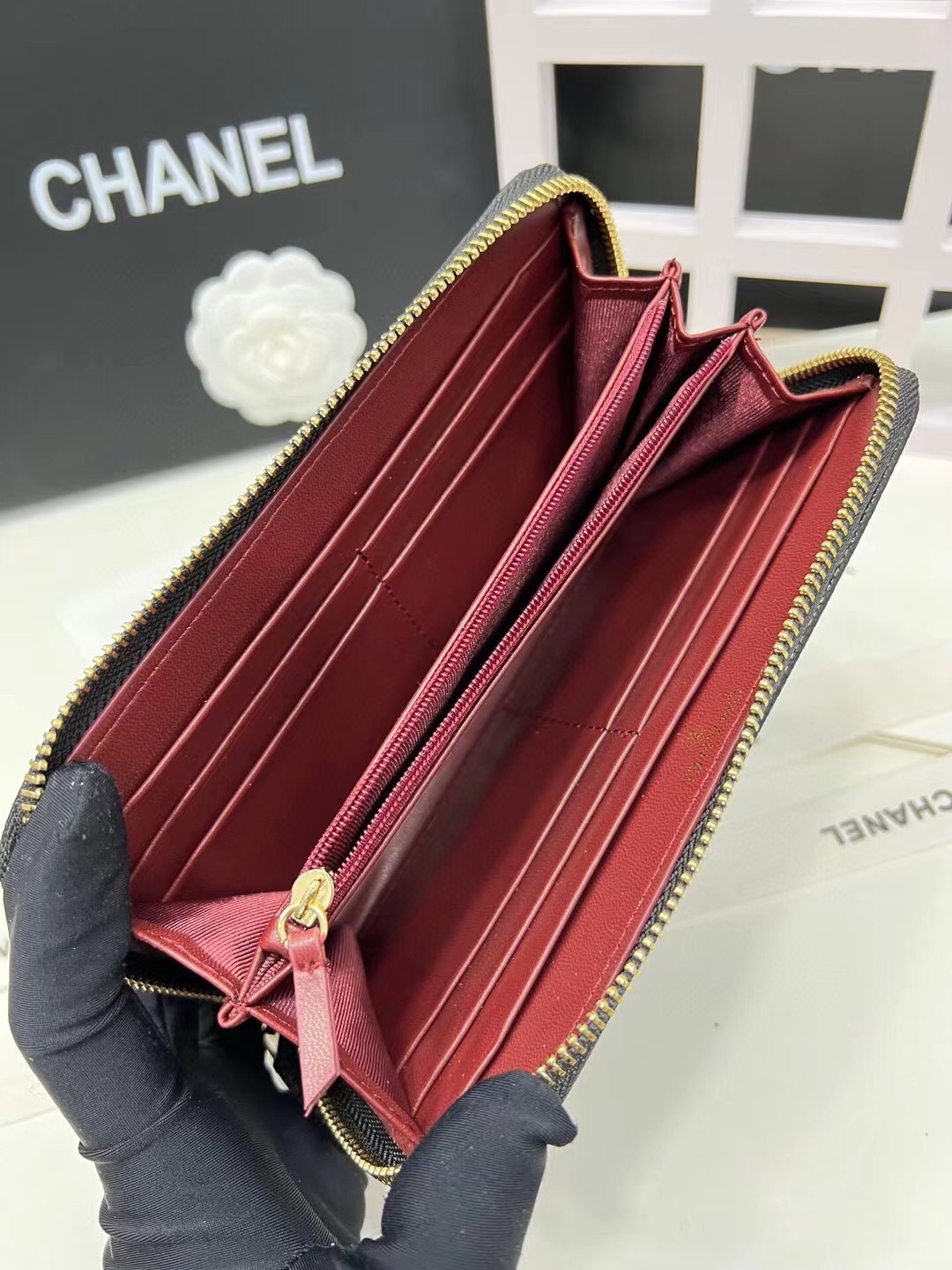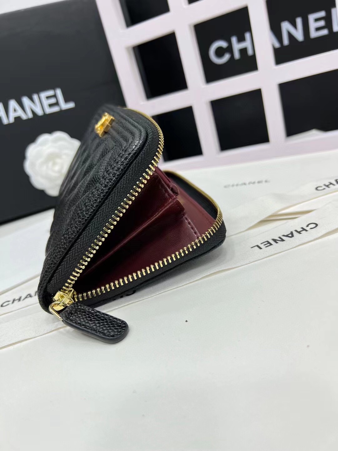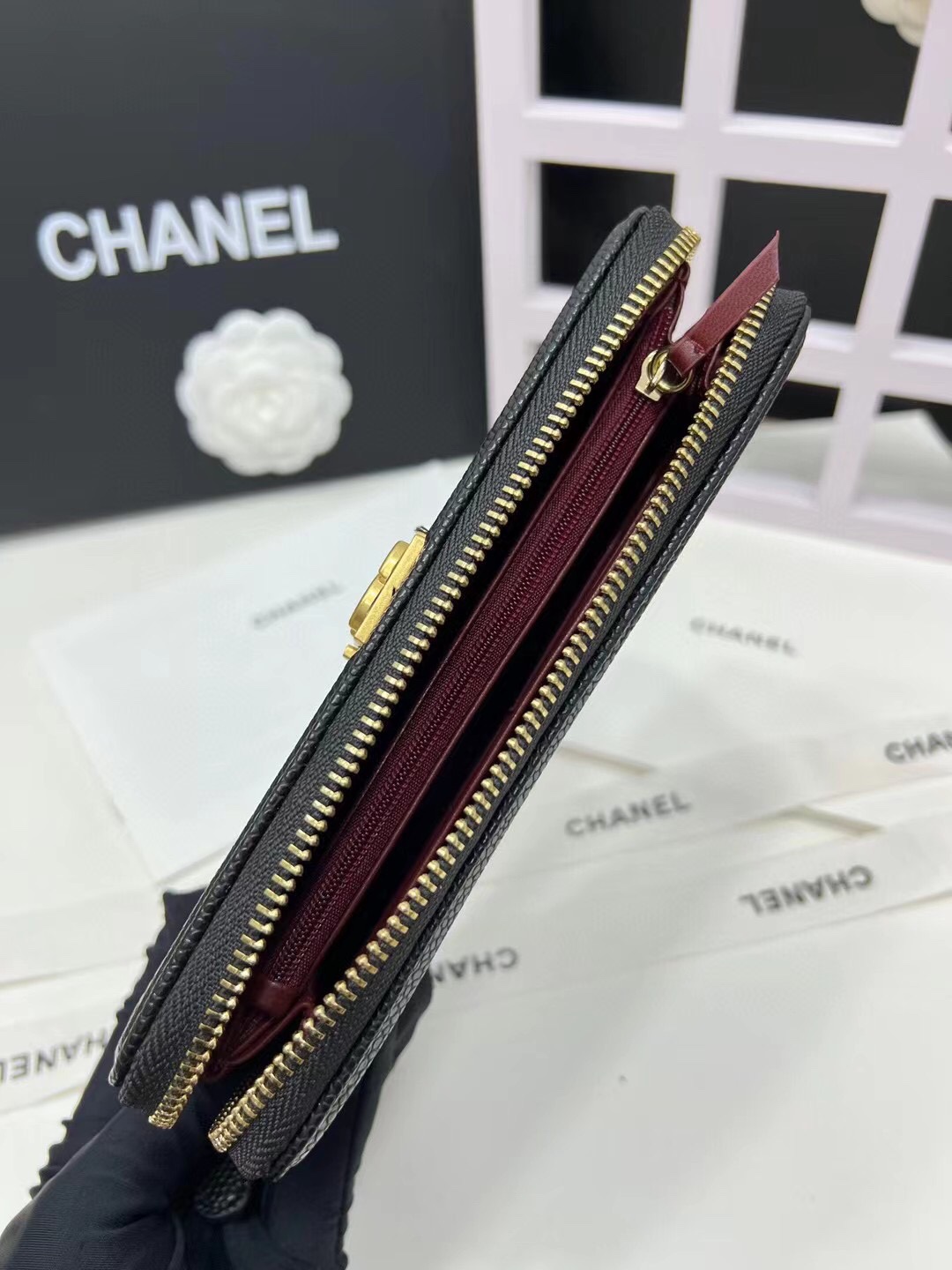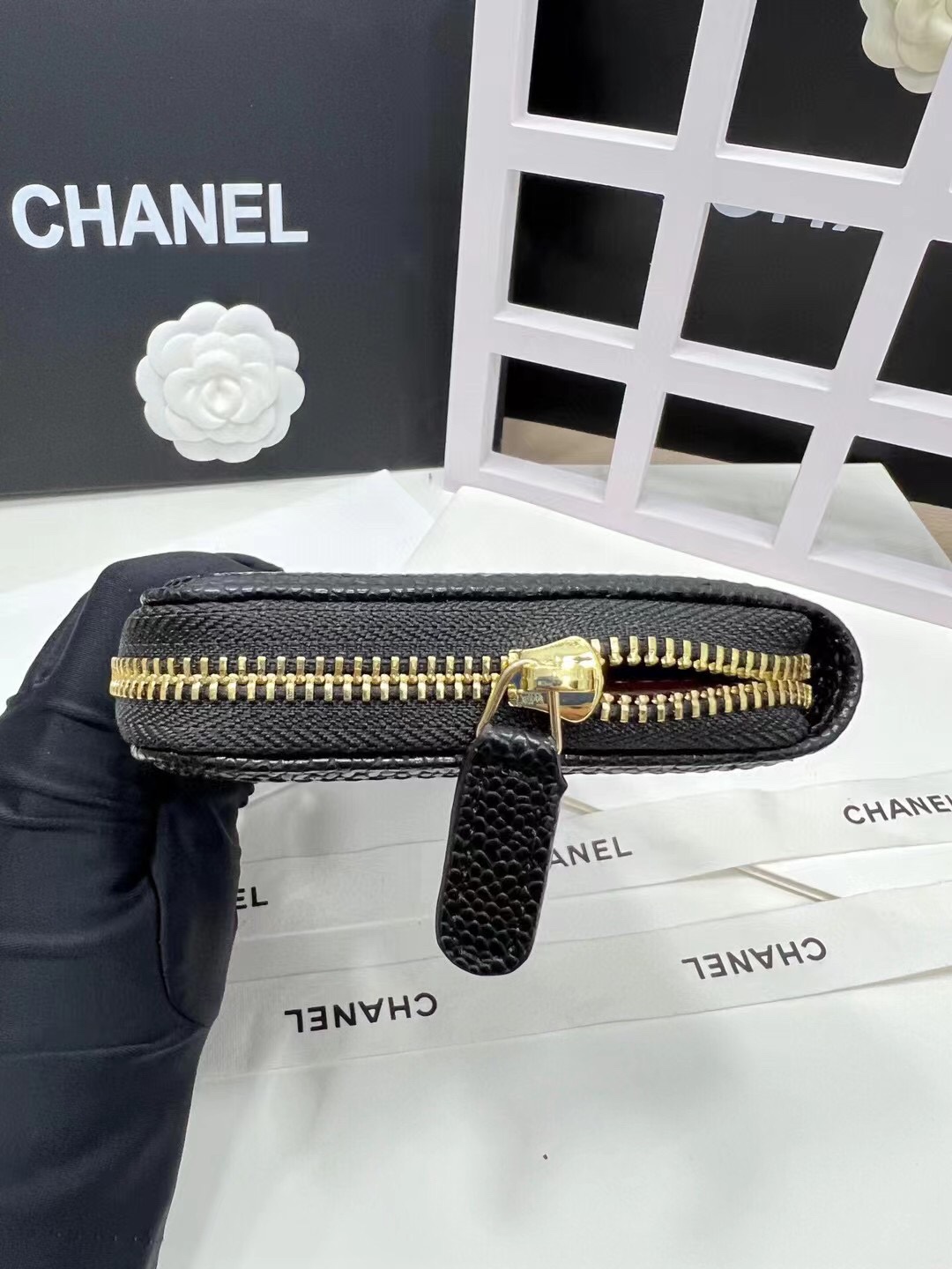 【シャネル】キャビアスキン ラウンドファスナー長財布 ココマーク金具 上品なブラックのレディースウォレット