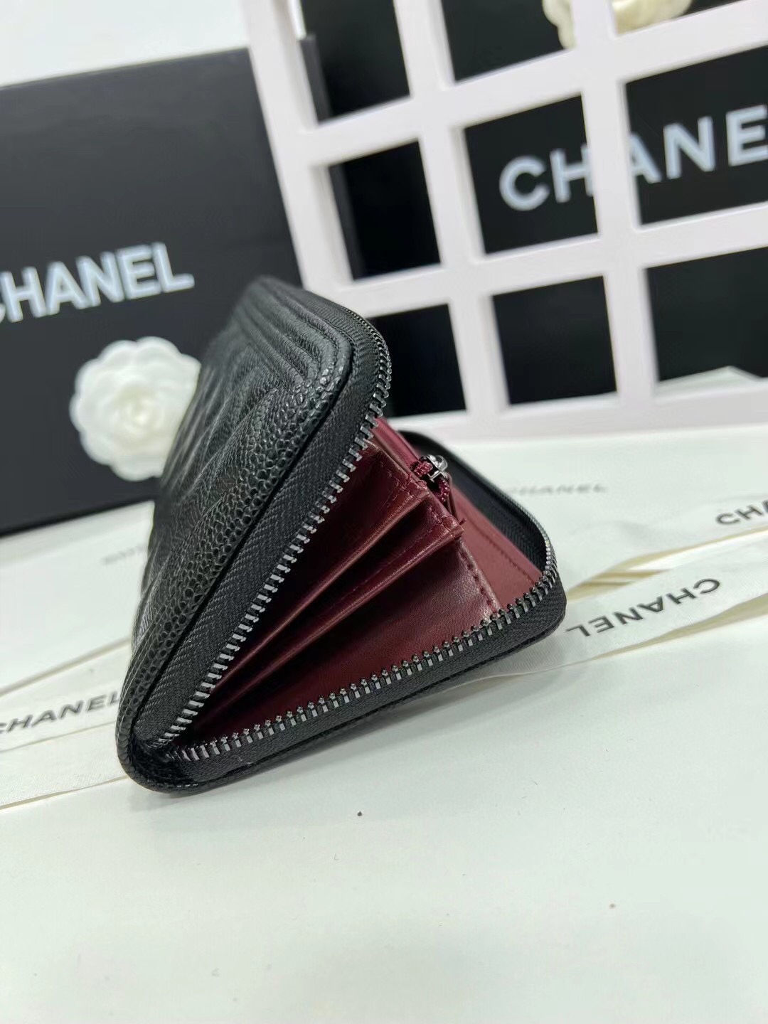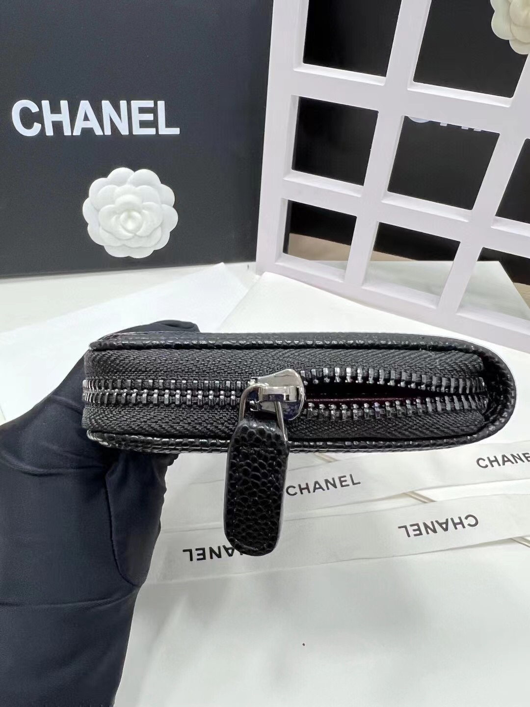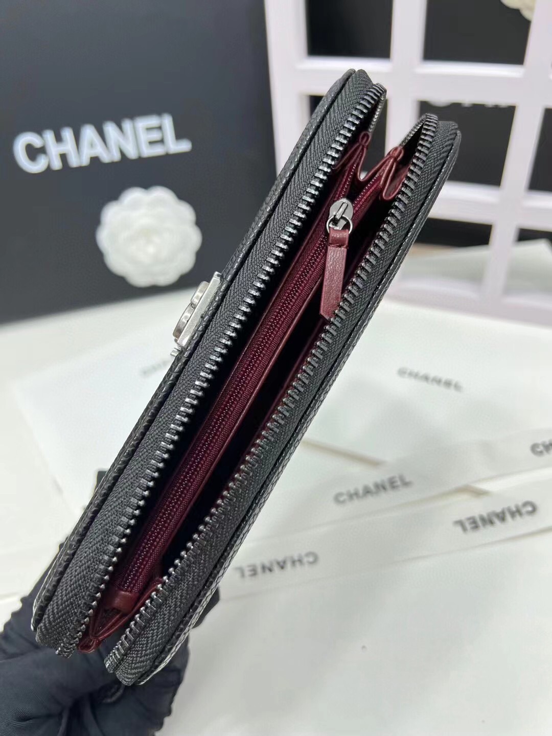 【シャネル】キャビアスキン ラウンドファスナー長財布 ココマーク金具 上品なブラックレザーのウォレット