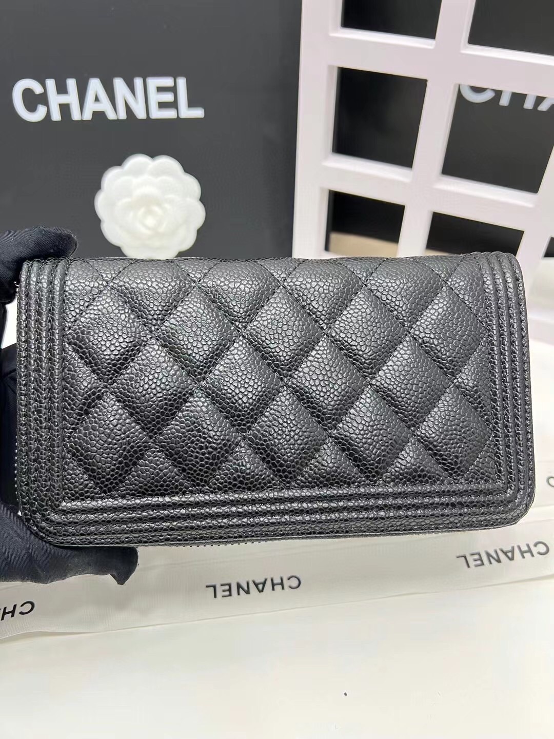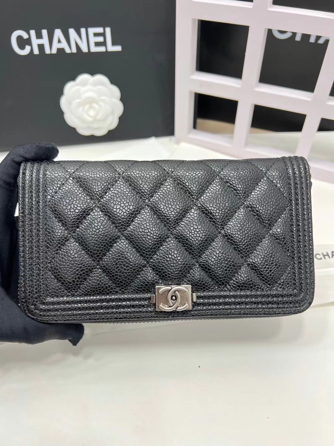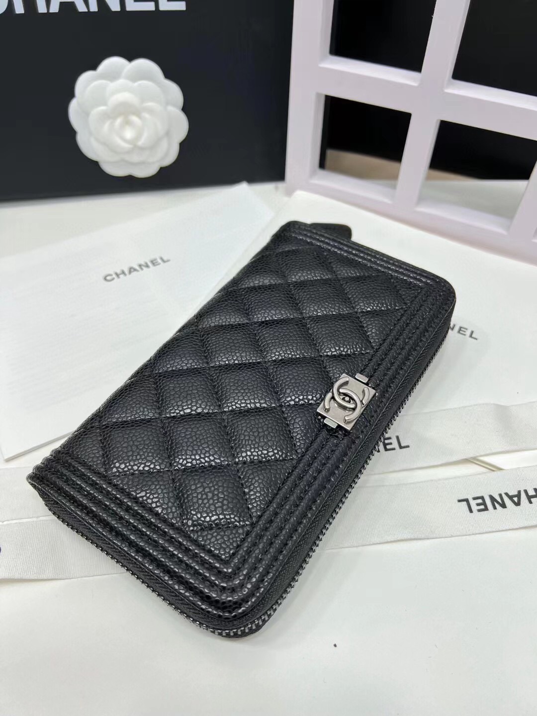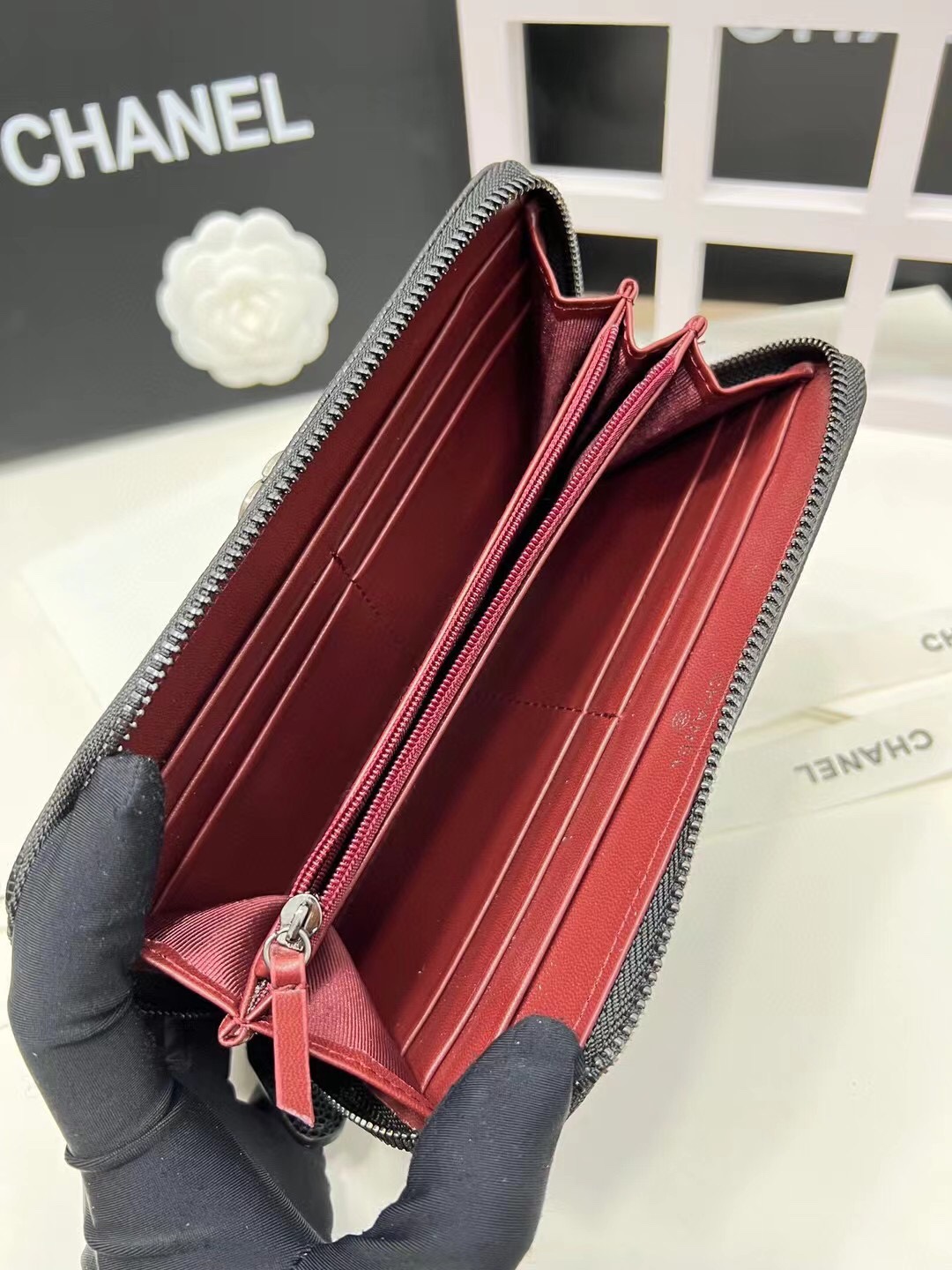 【シャネル】キャビアスキン ラウンドファスナー長財布 ココマーク金具 上品なブラックレザーのウォレット