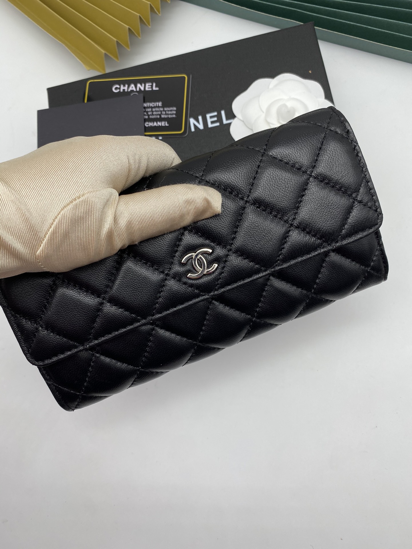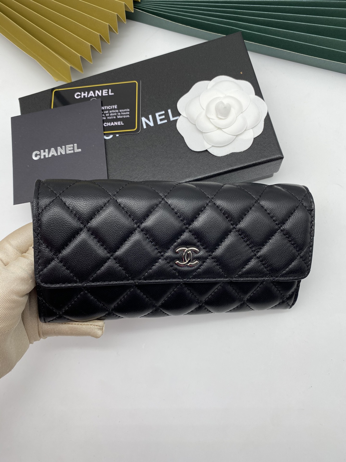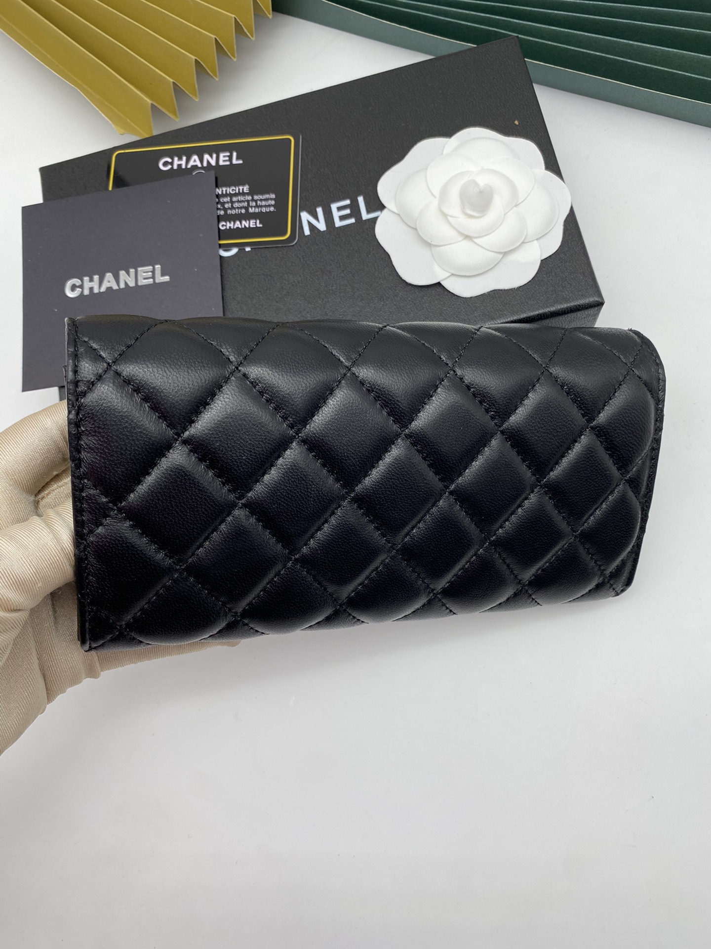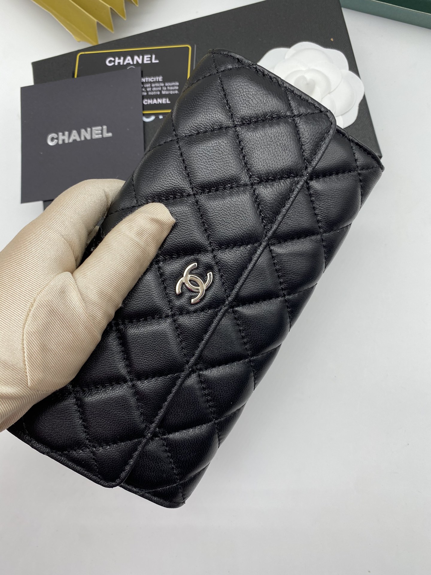 【シャネル】キャビアスキン 長財布 ココマーク金具 ブラック 上品で実用的なレディースウォレット
