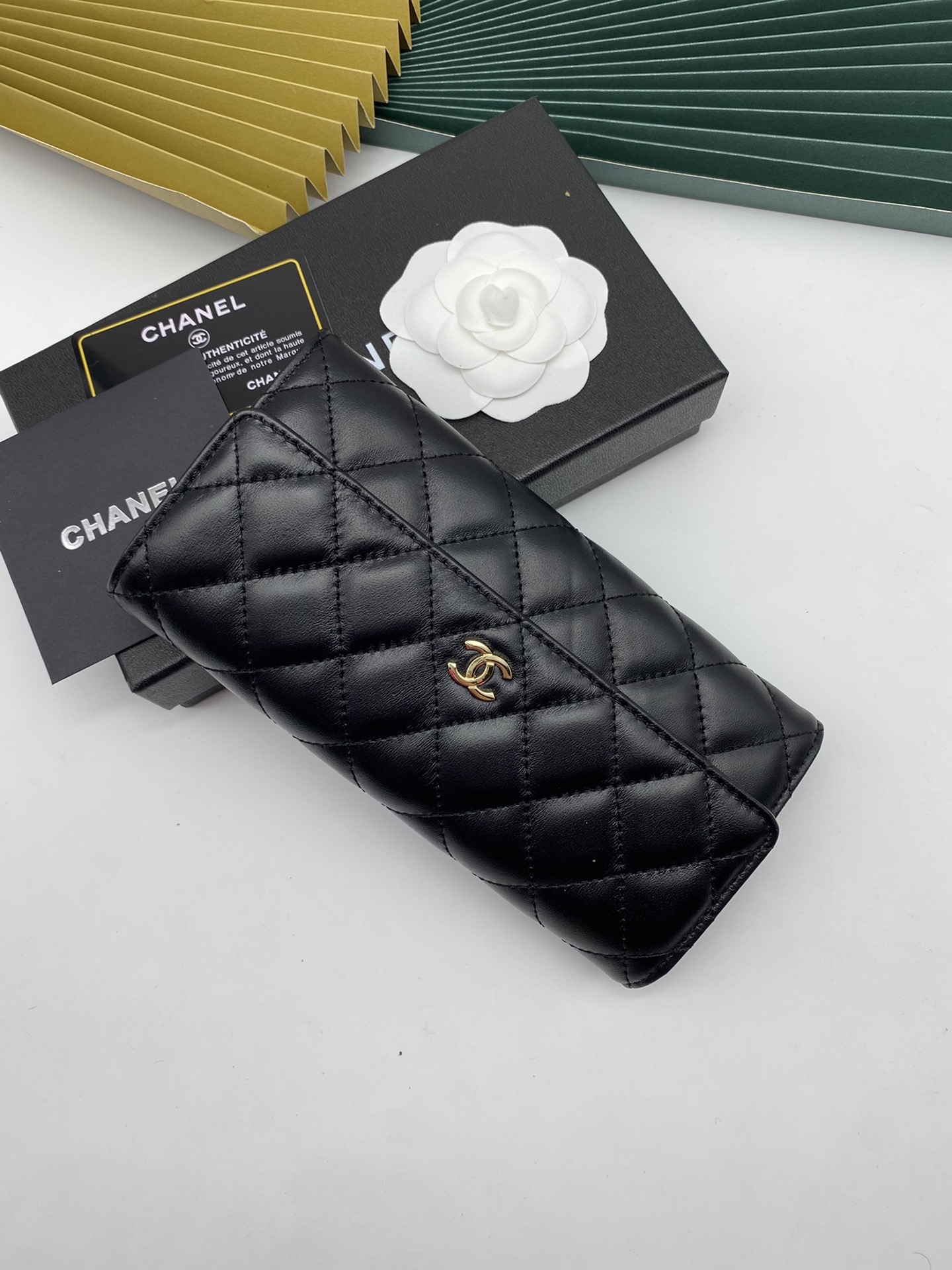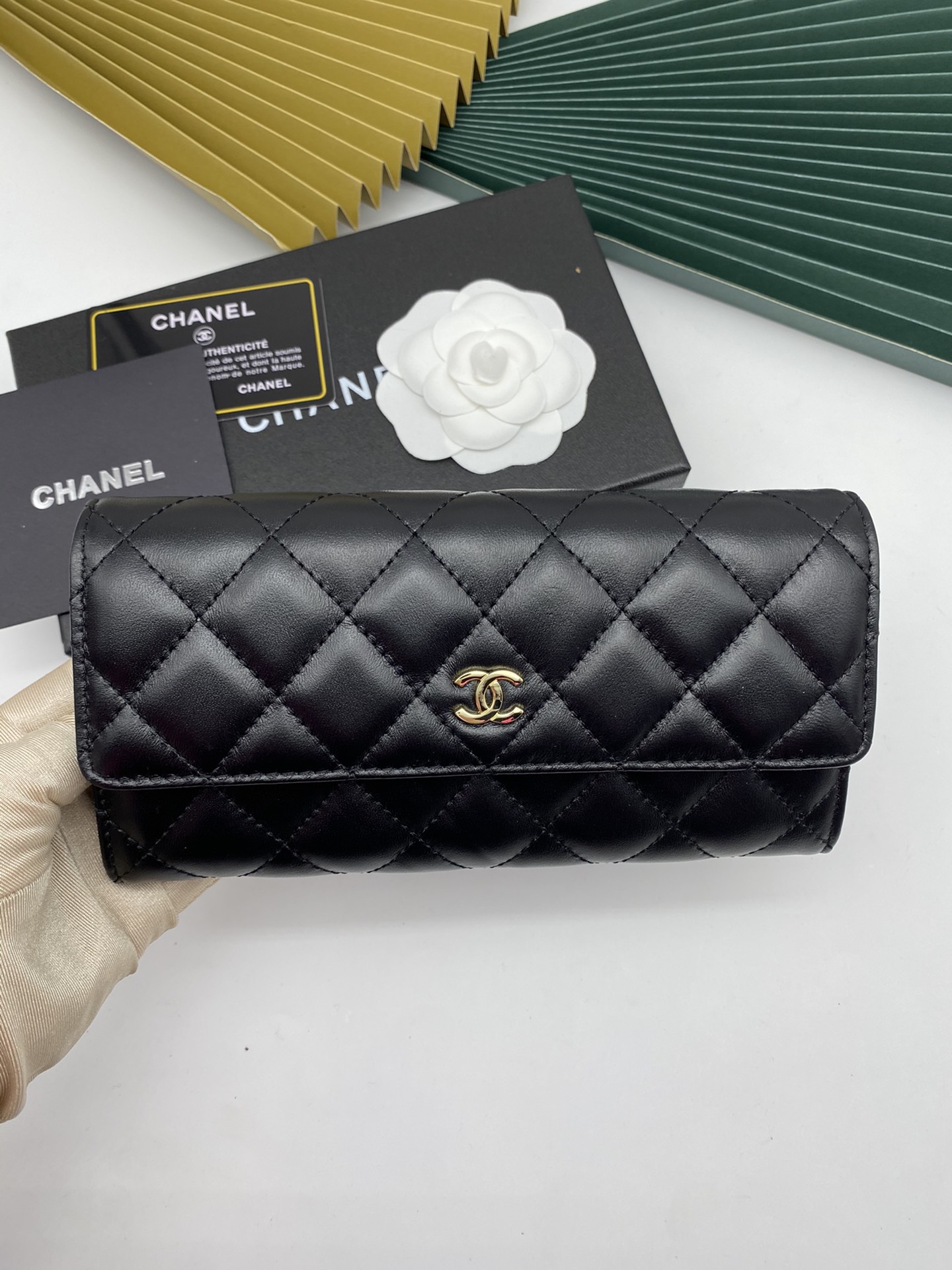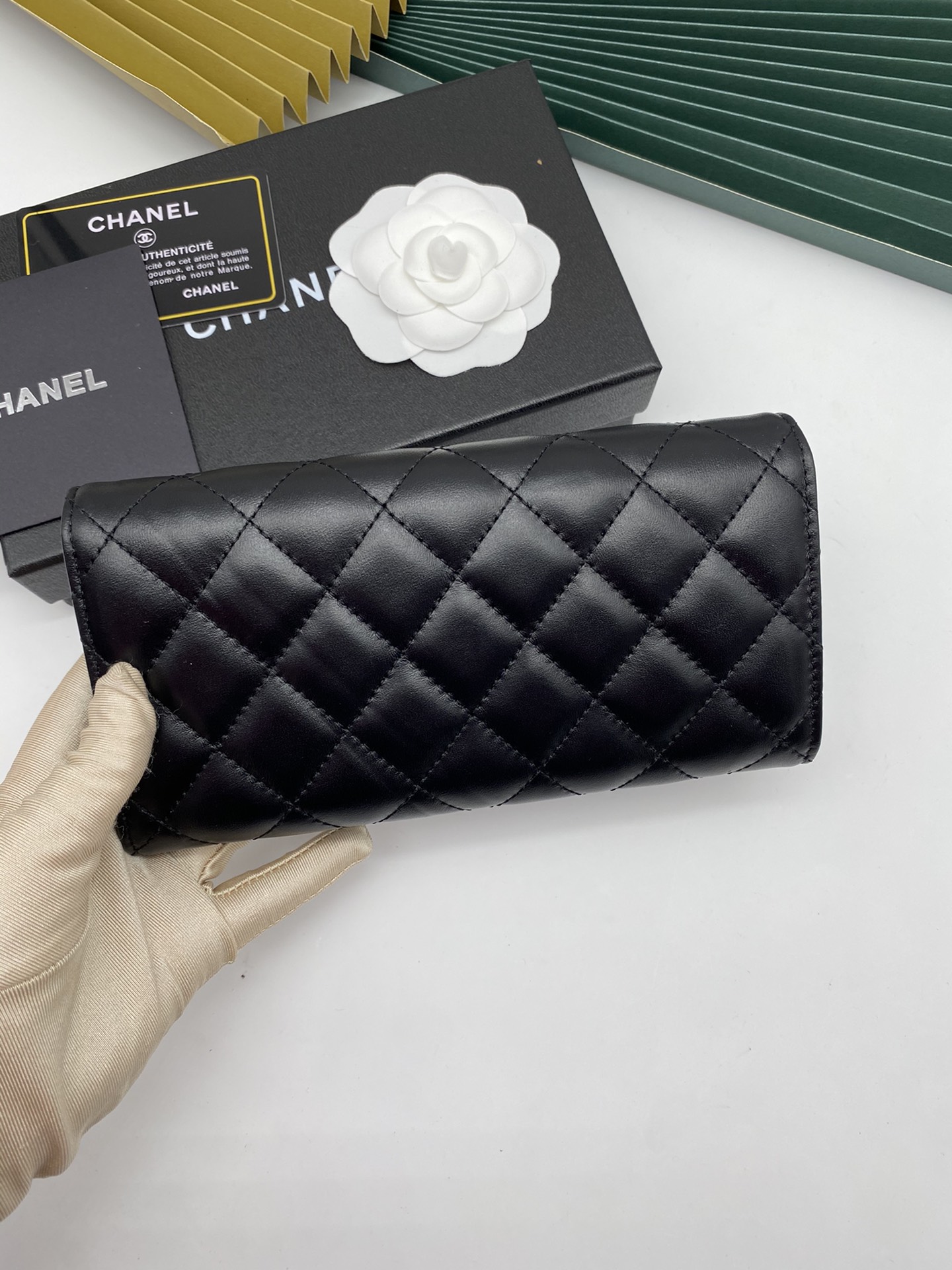 【シャネル】キャビアスキン 長財布 ココマーク金具 上品なブラック レディースウォレット