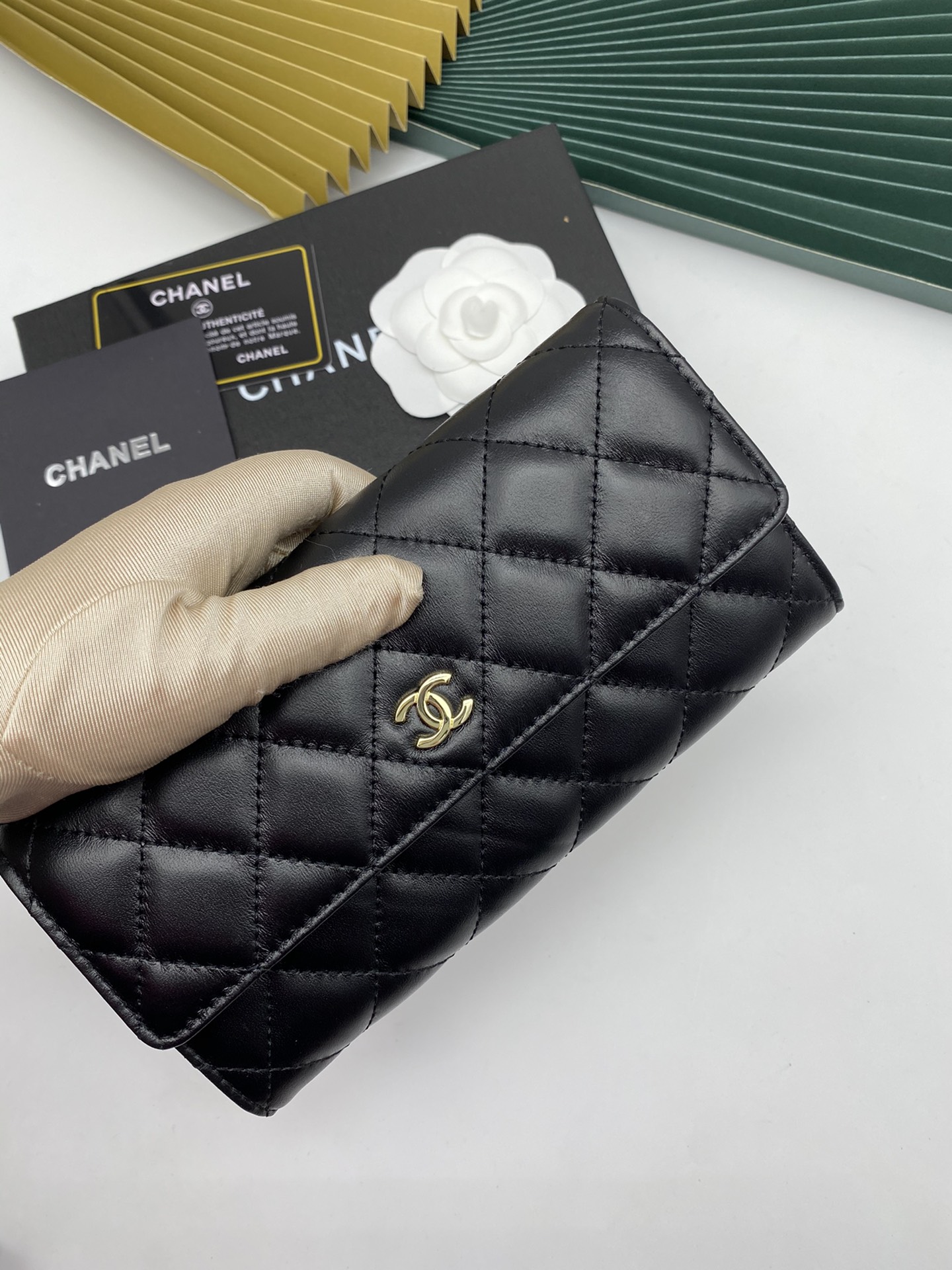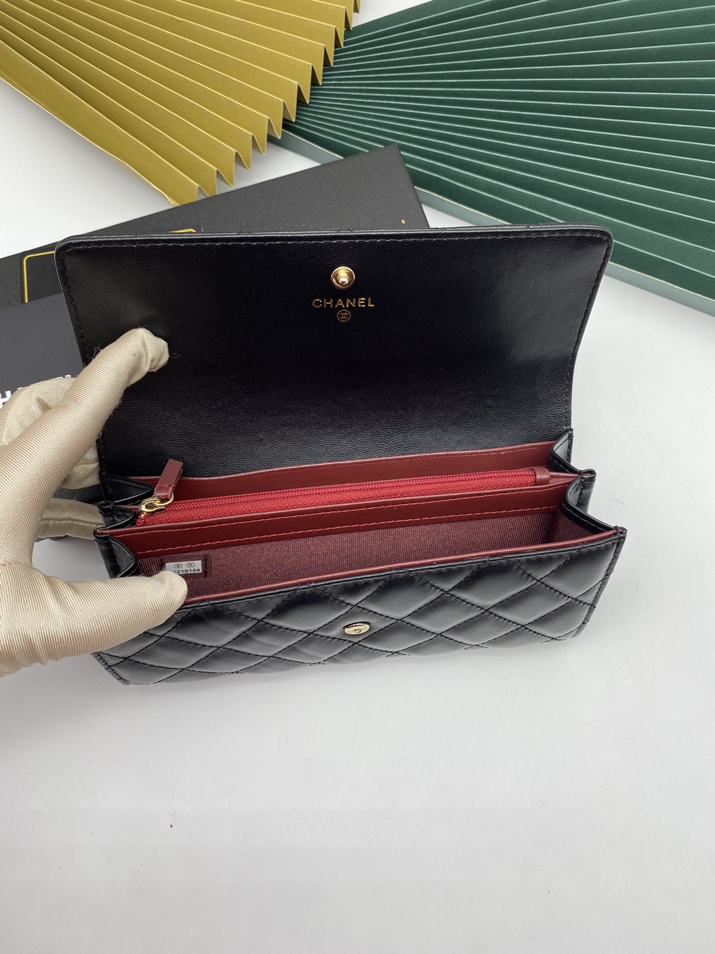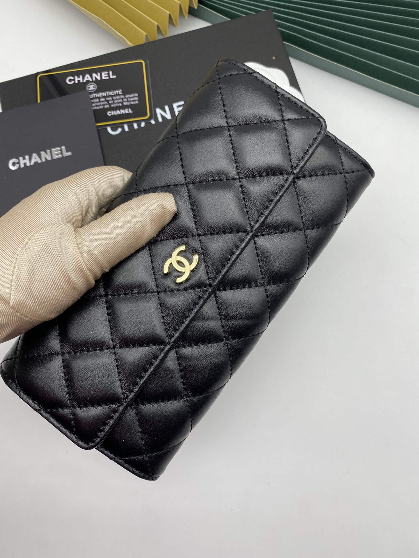 【シャネル】キャビアスキン 長財布 ココマーク金具 上品なブラック レディースウォレット