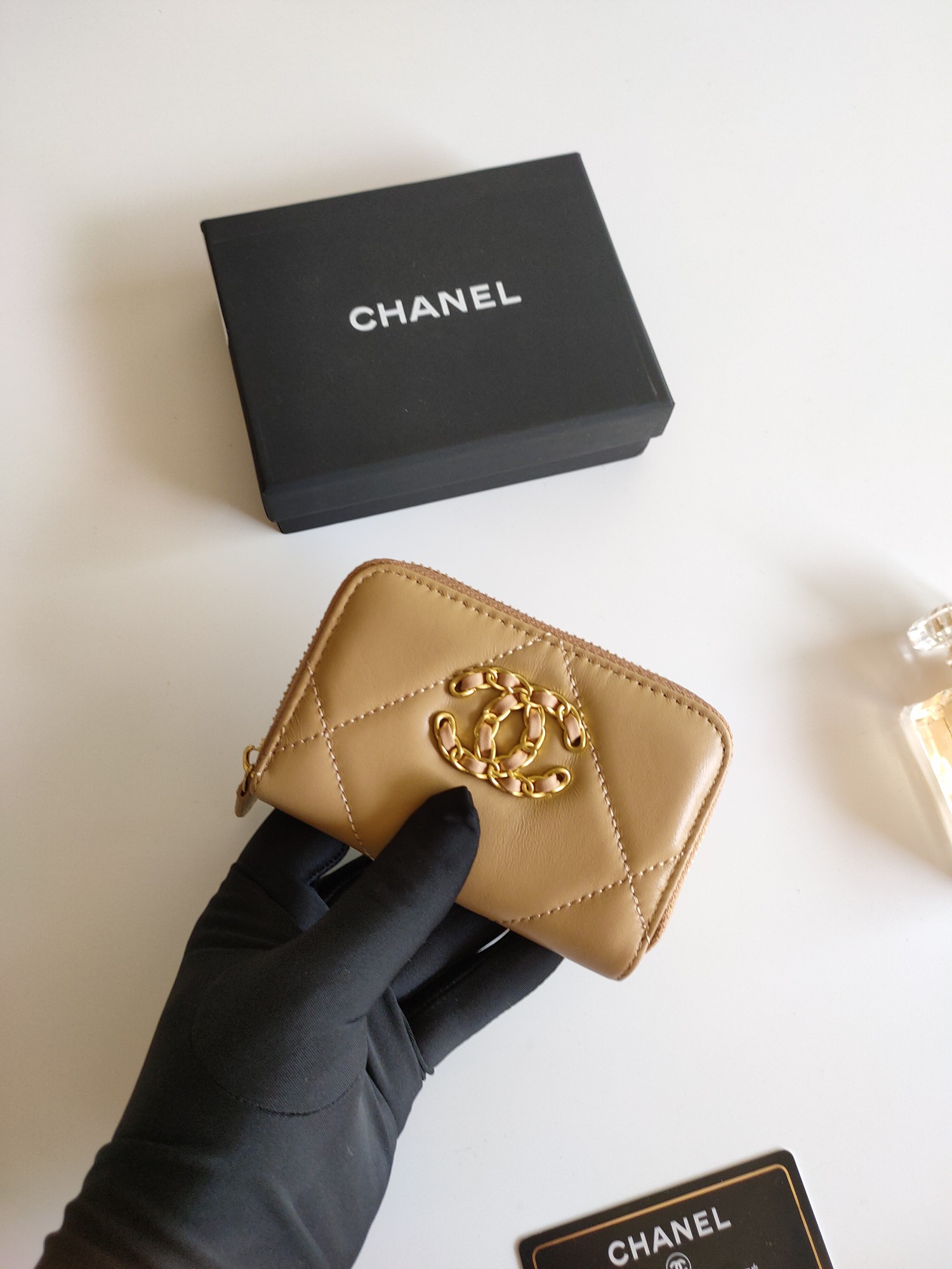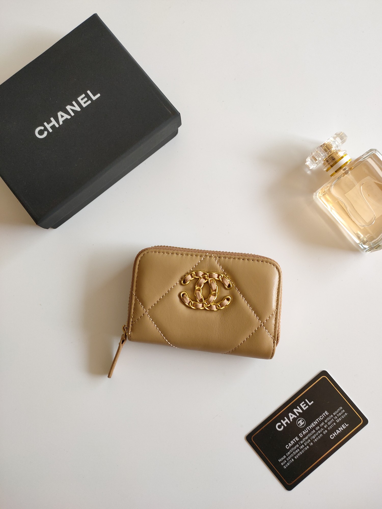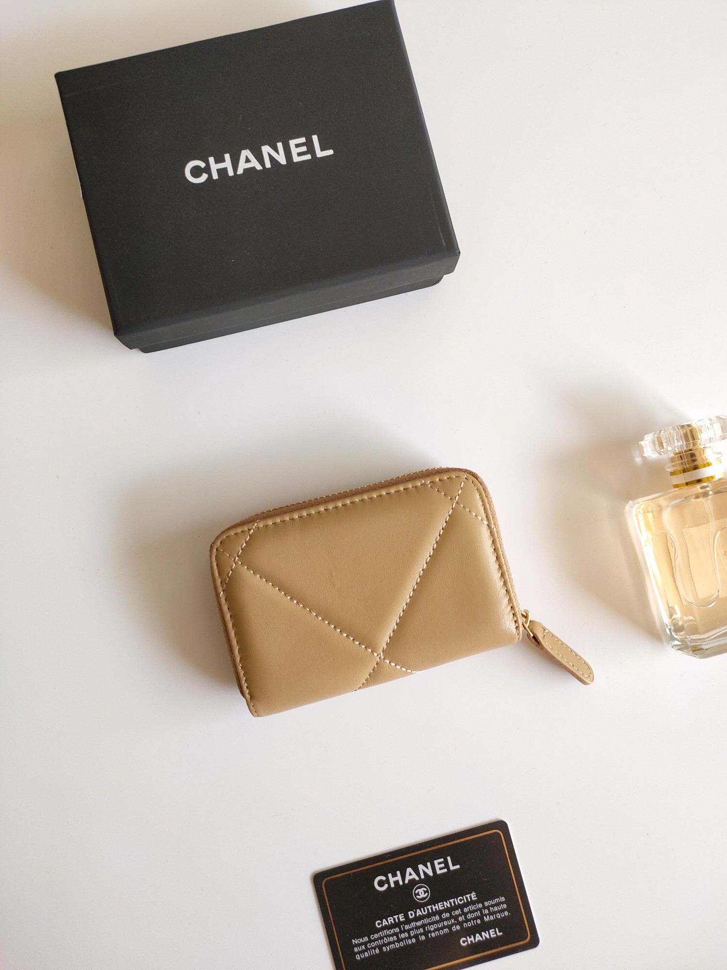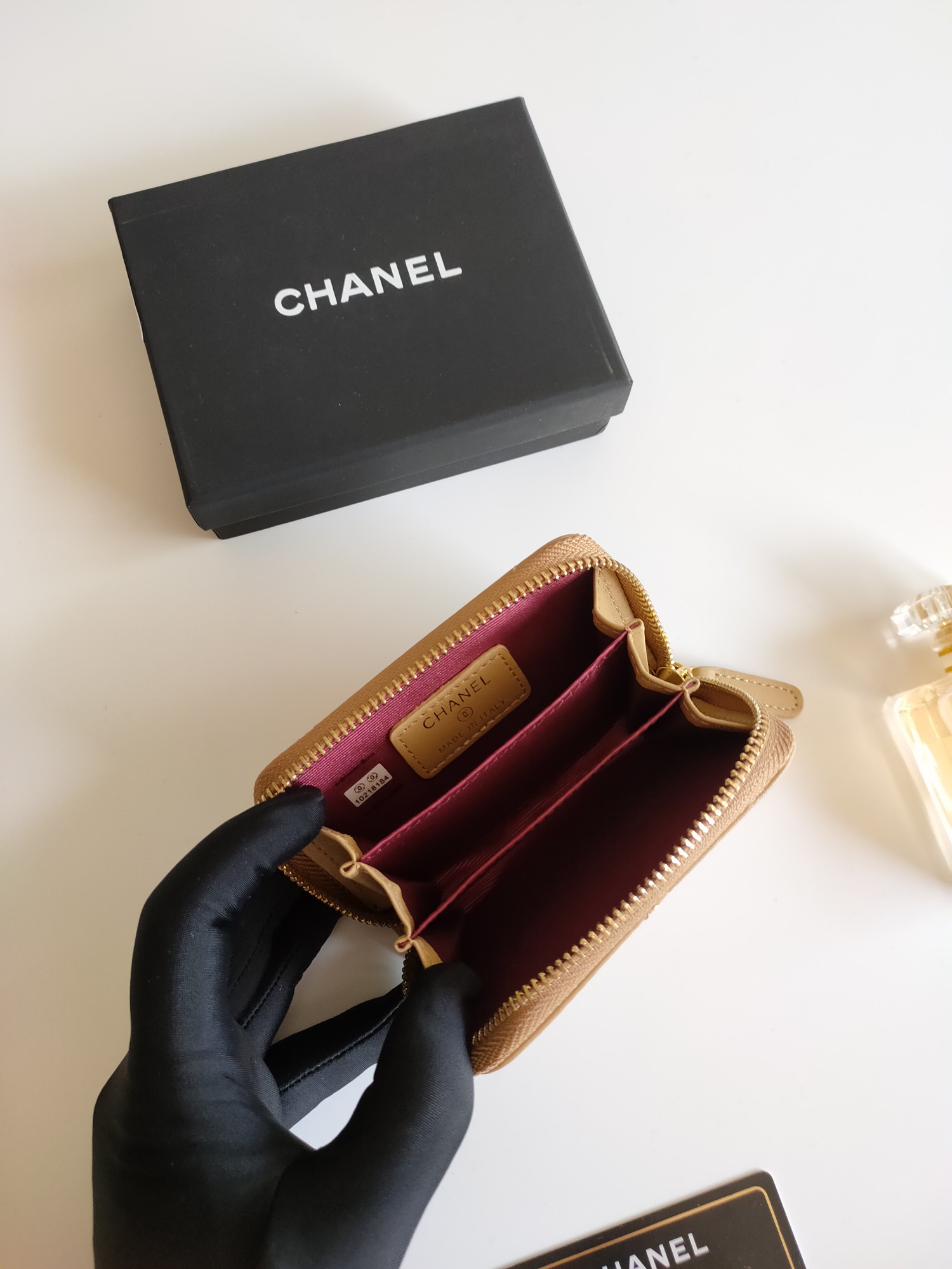 シャネルを代表するキャビアスキンと、愛らしいココマーク金具が上品な印象の長財布です