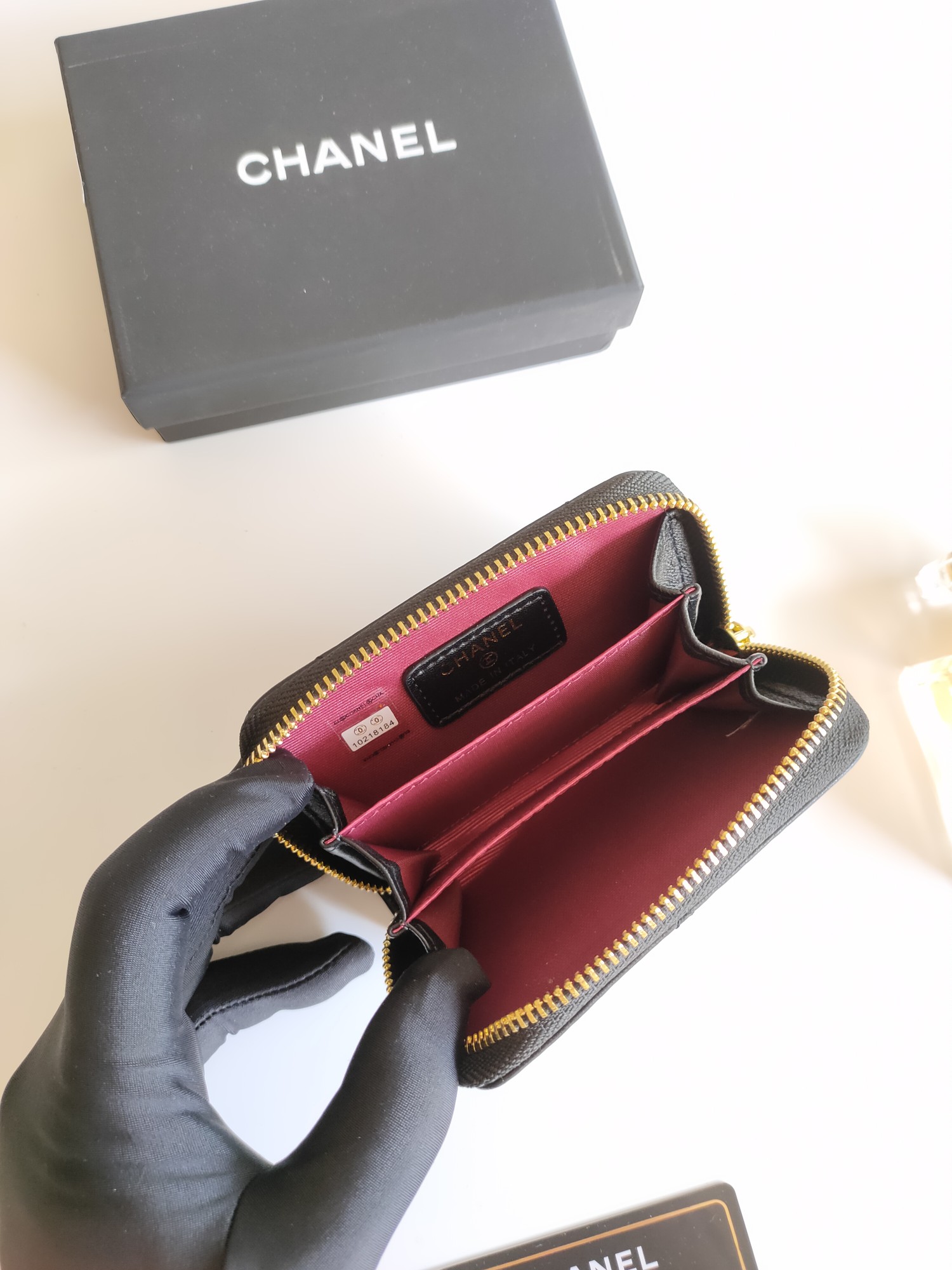 上質なキャビアスキンと輝くココマーク金具が美しい、シャネルの代表的な長財布です