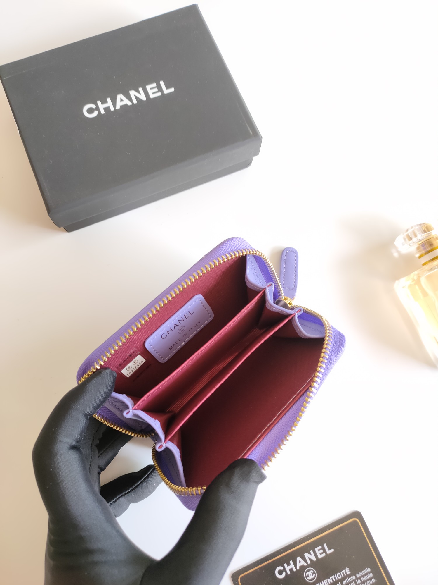上質なキャビアスキンに輝くココマーク金具が美しい、シャネルのラウンドファスナー長財布です